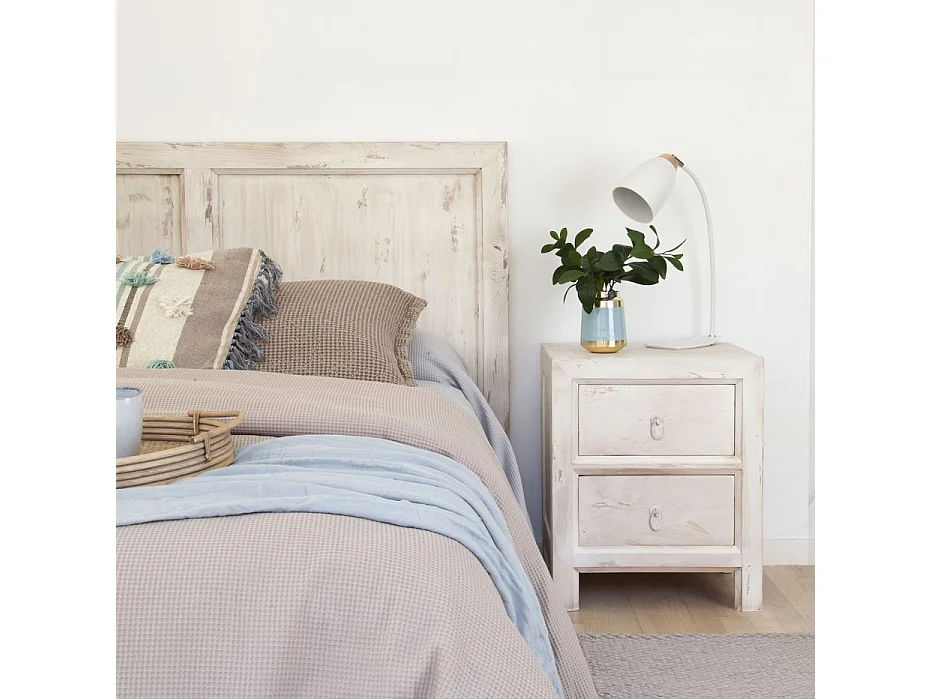 Table de chevet en bois massif blanc 50x61