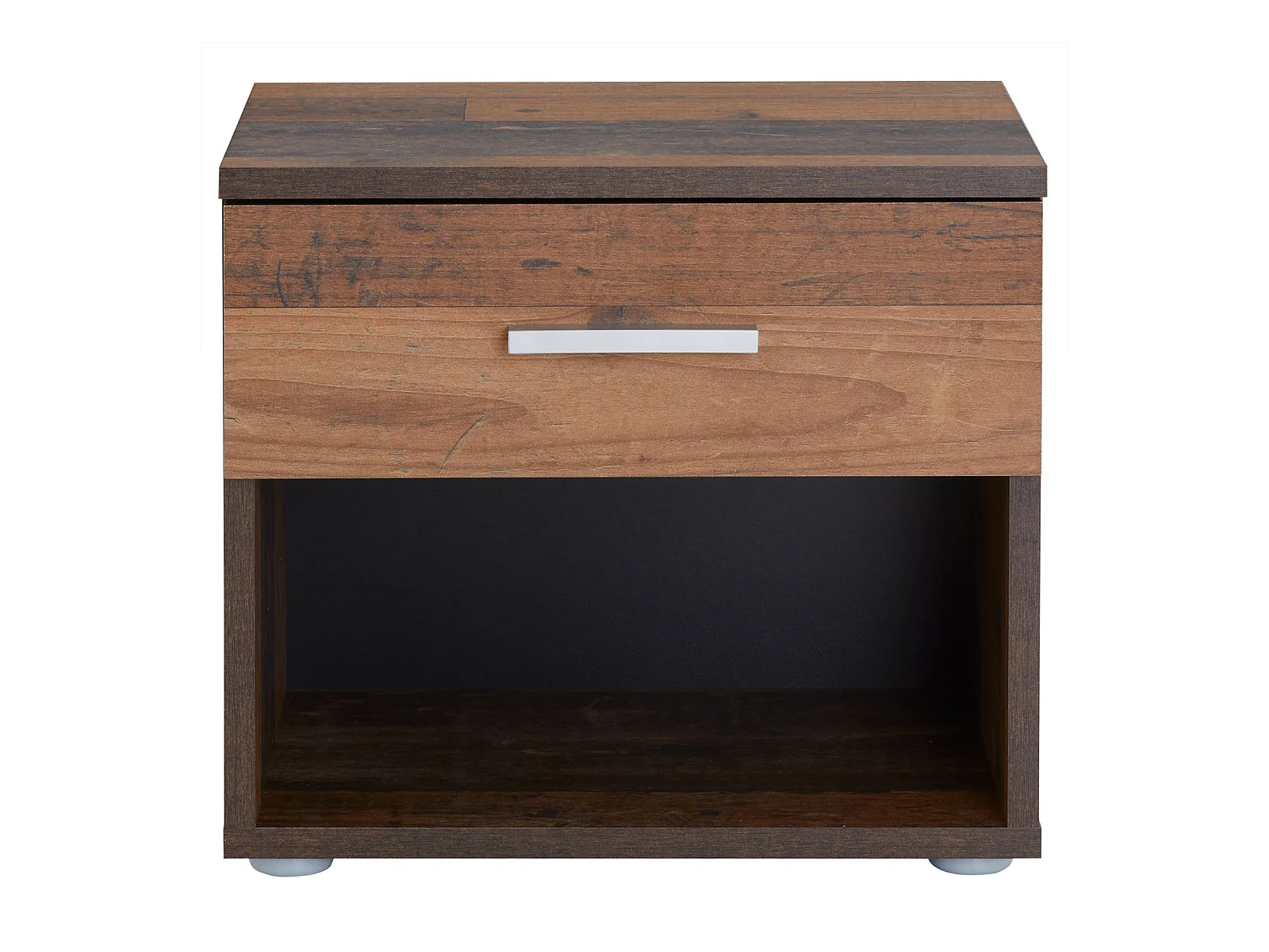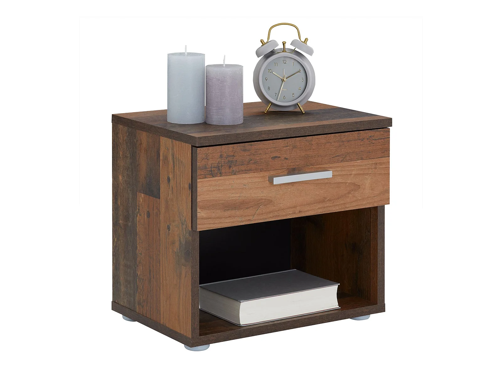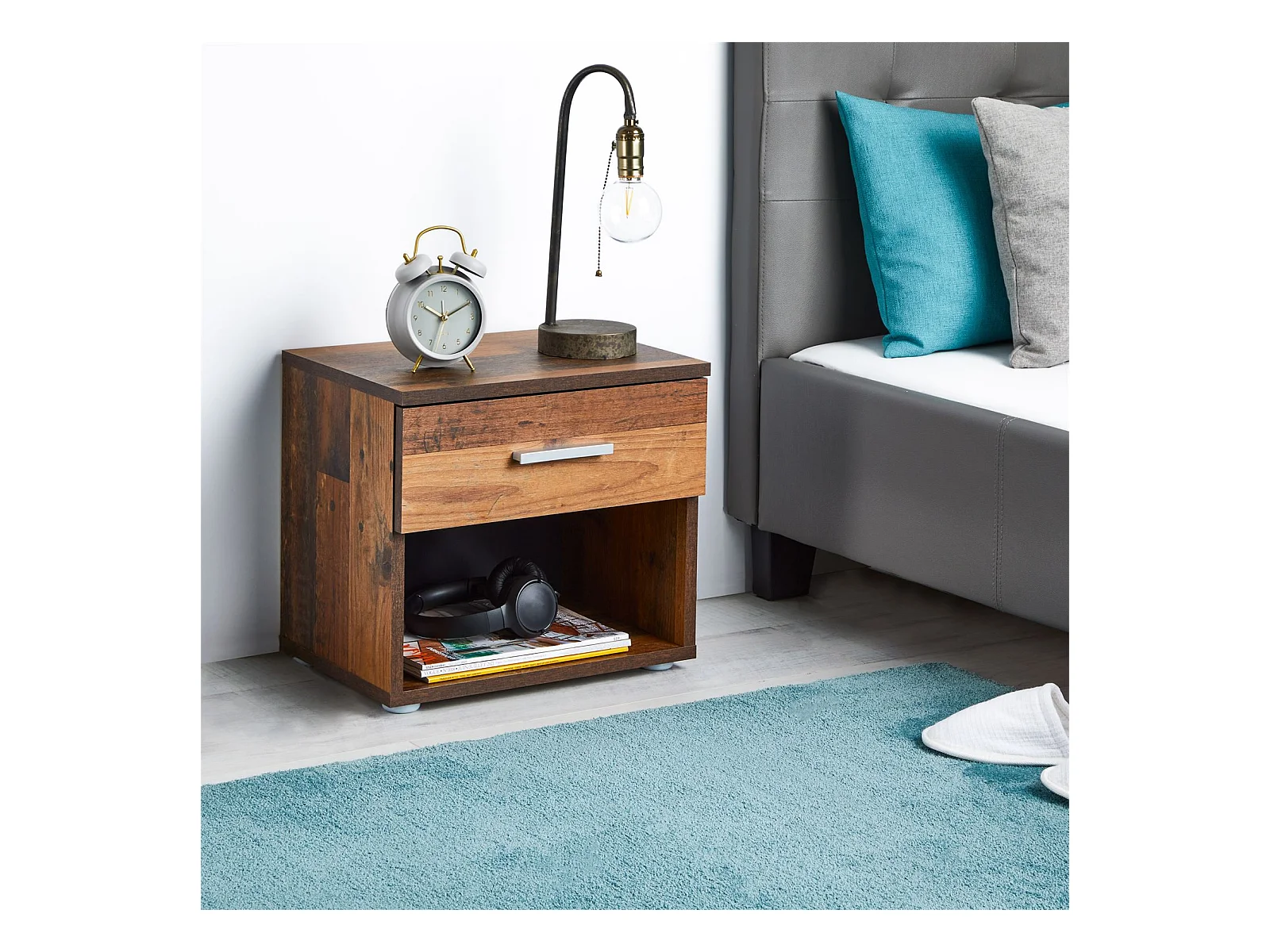 Table de chevet MAEL, table de nuit casier avec 1 tiroir et 1 niche, en mélaminé décor bois old style