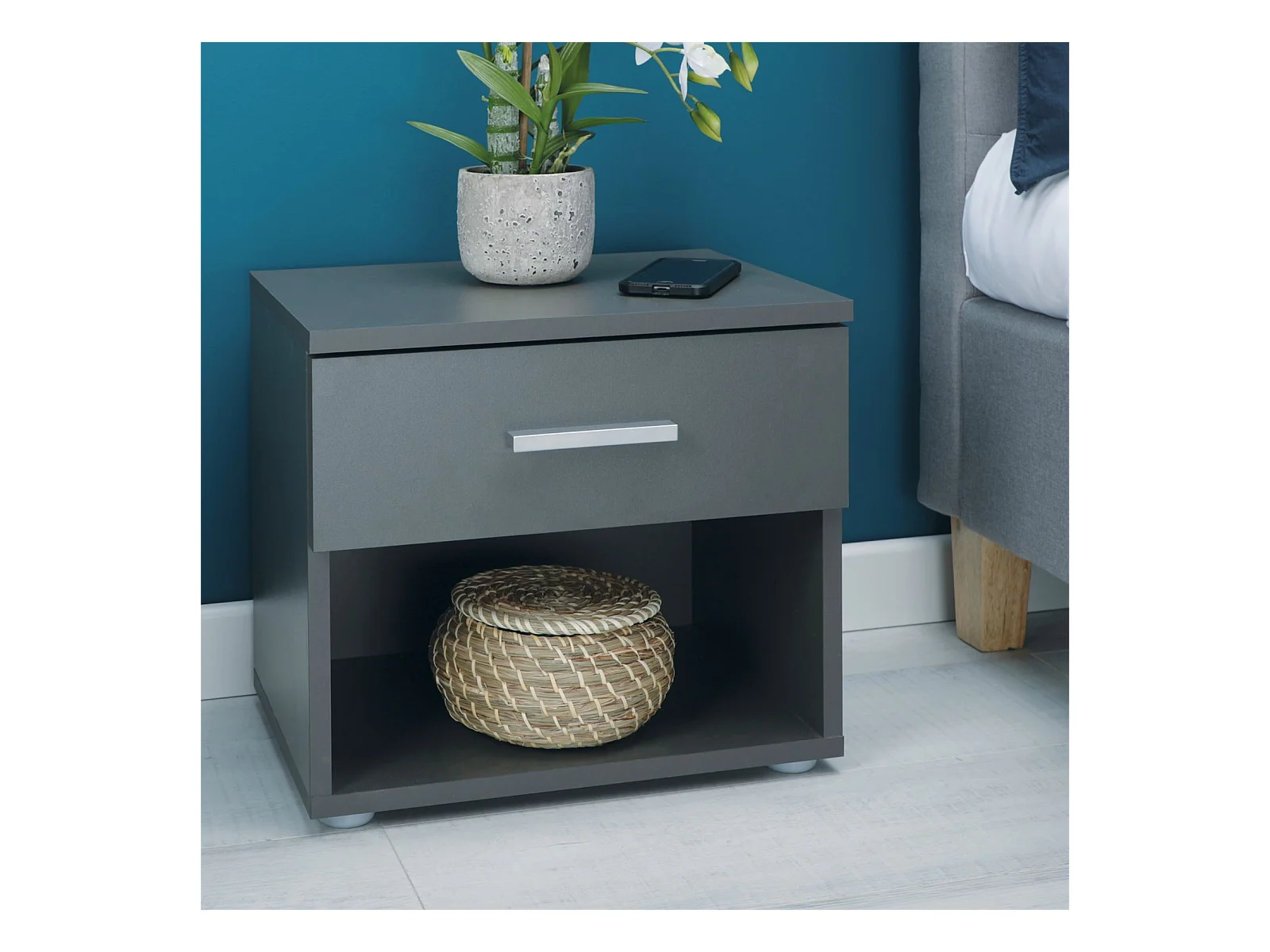 Table de chevet MAEL, table de nuit casier avec 1 tiroir et 1 niche, en mélaminé gris mat