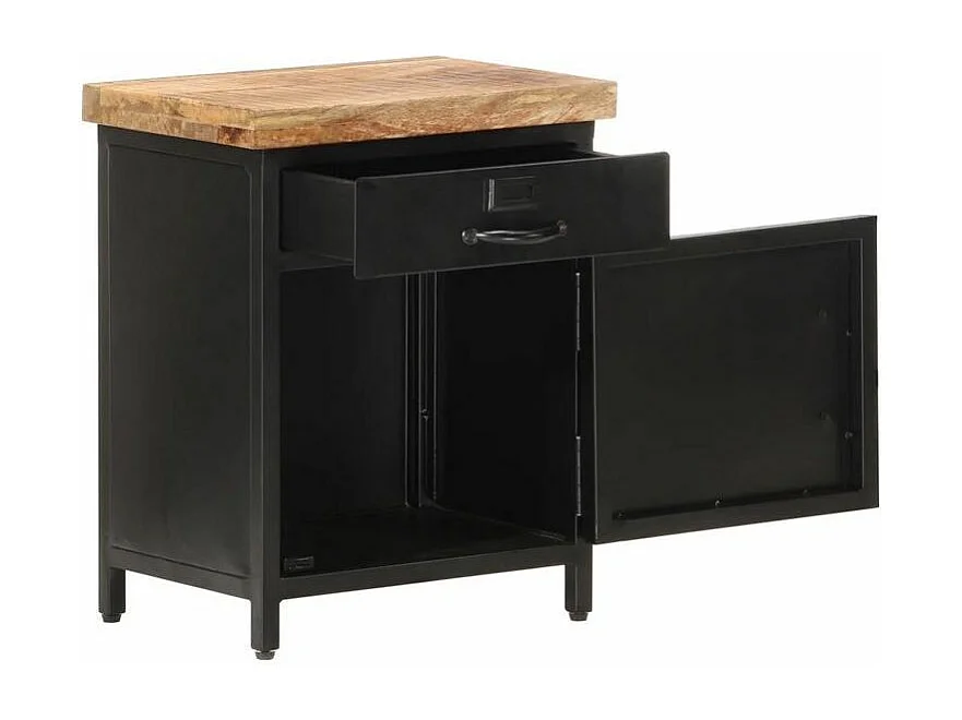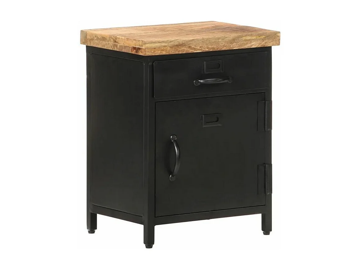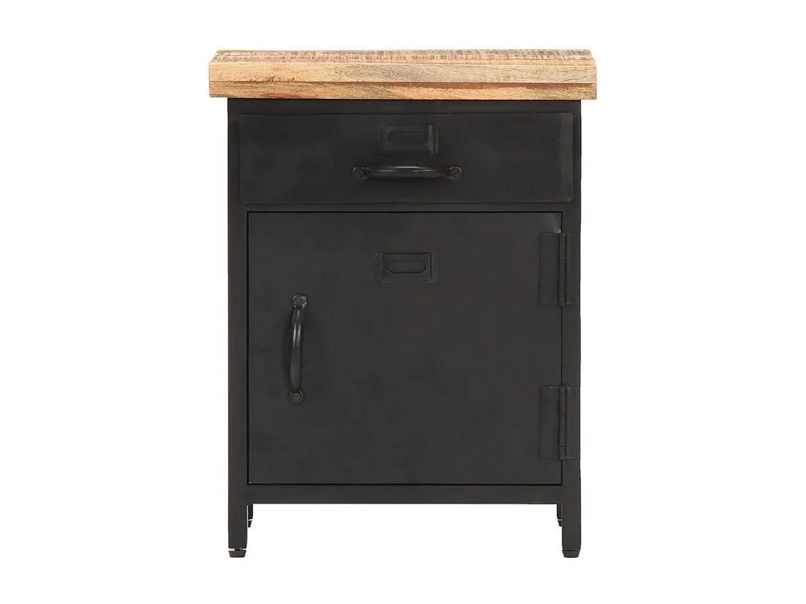Table de chevet 1 tiroir bois massif recyclé et métal noir Cloust