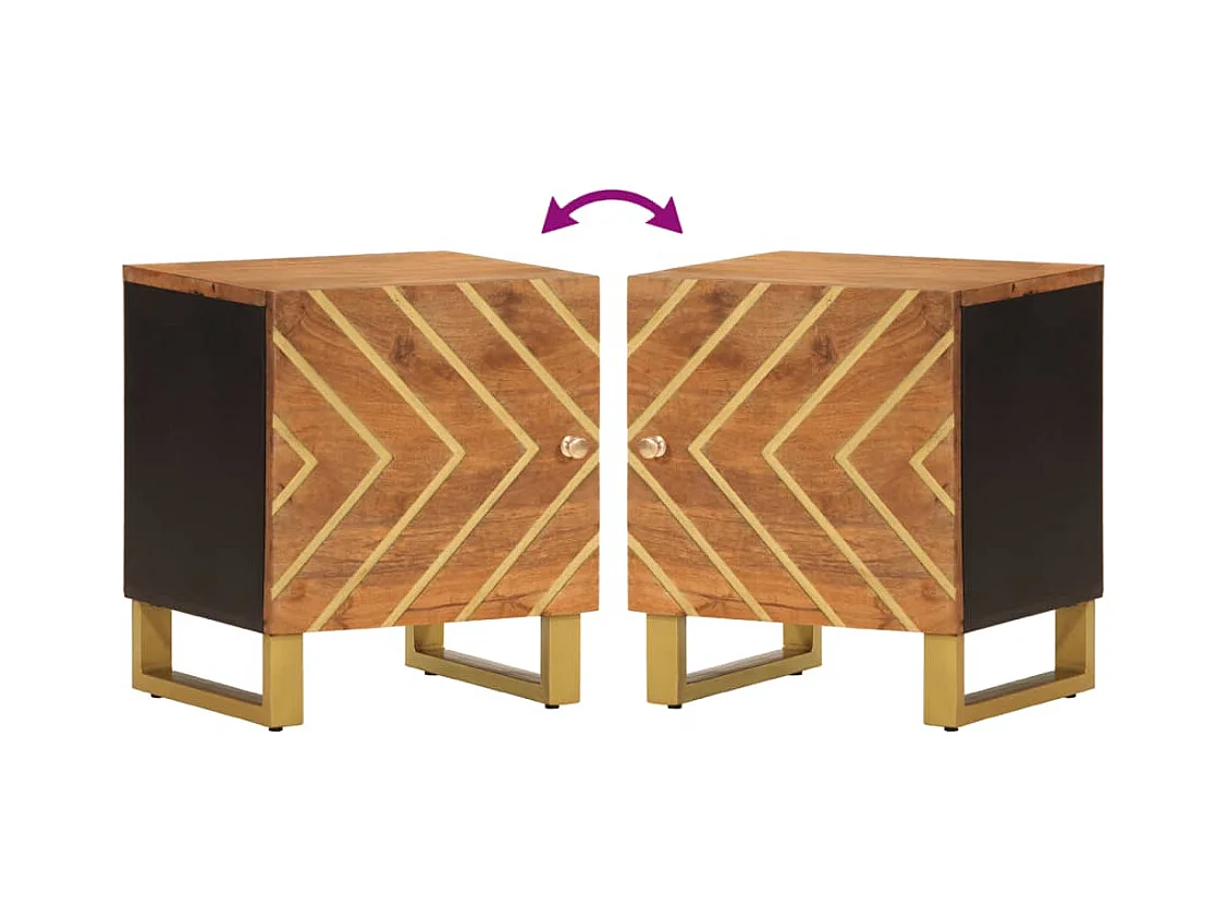 Table de chevet marron et noir bois de manguier solide