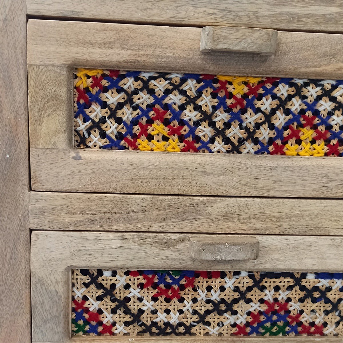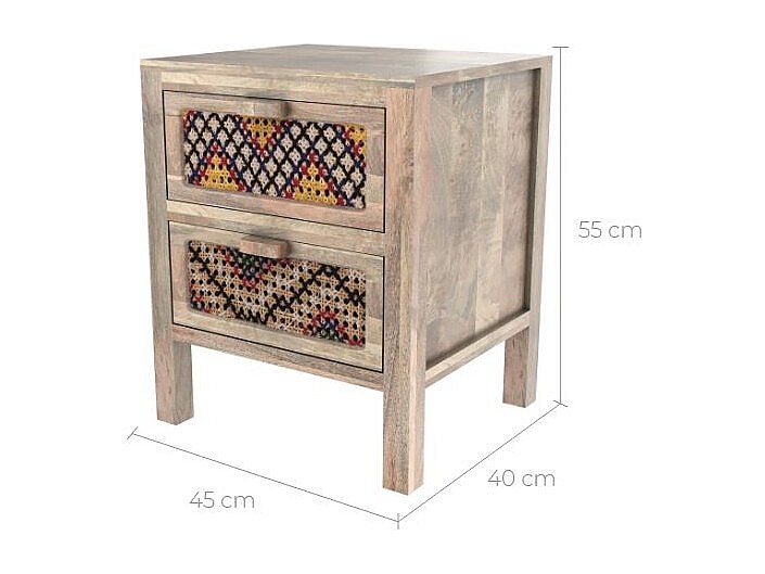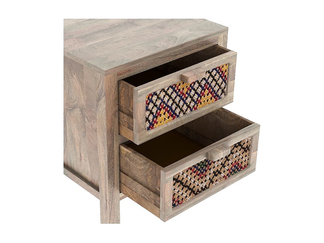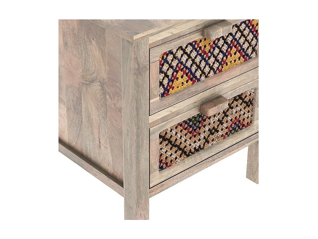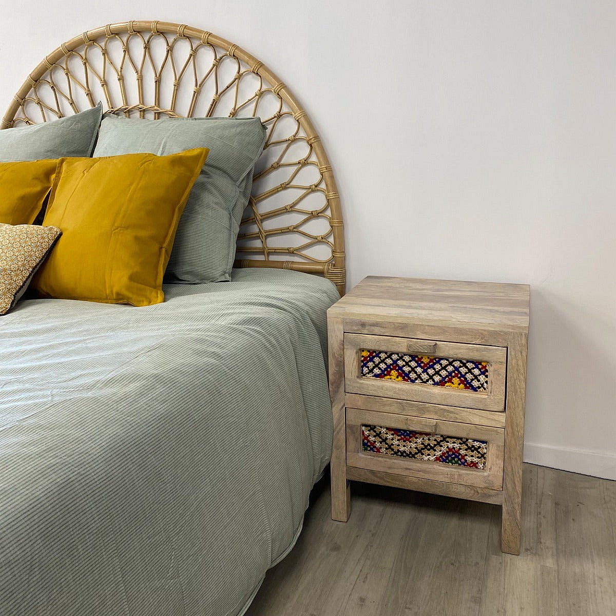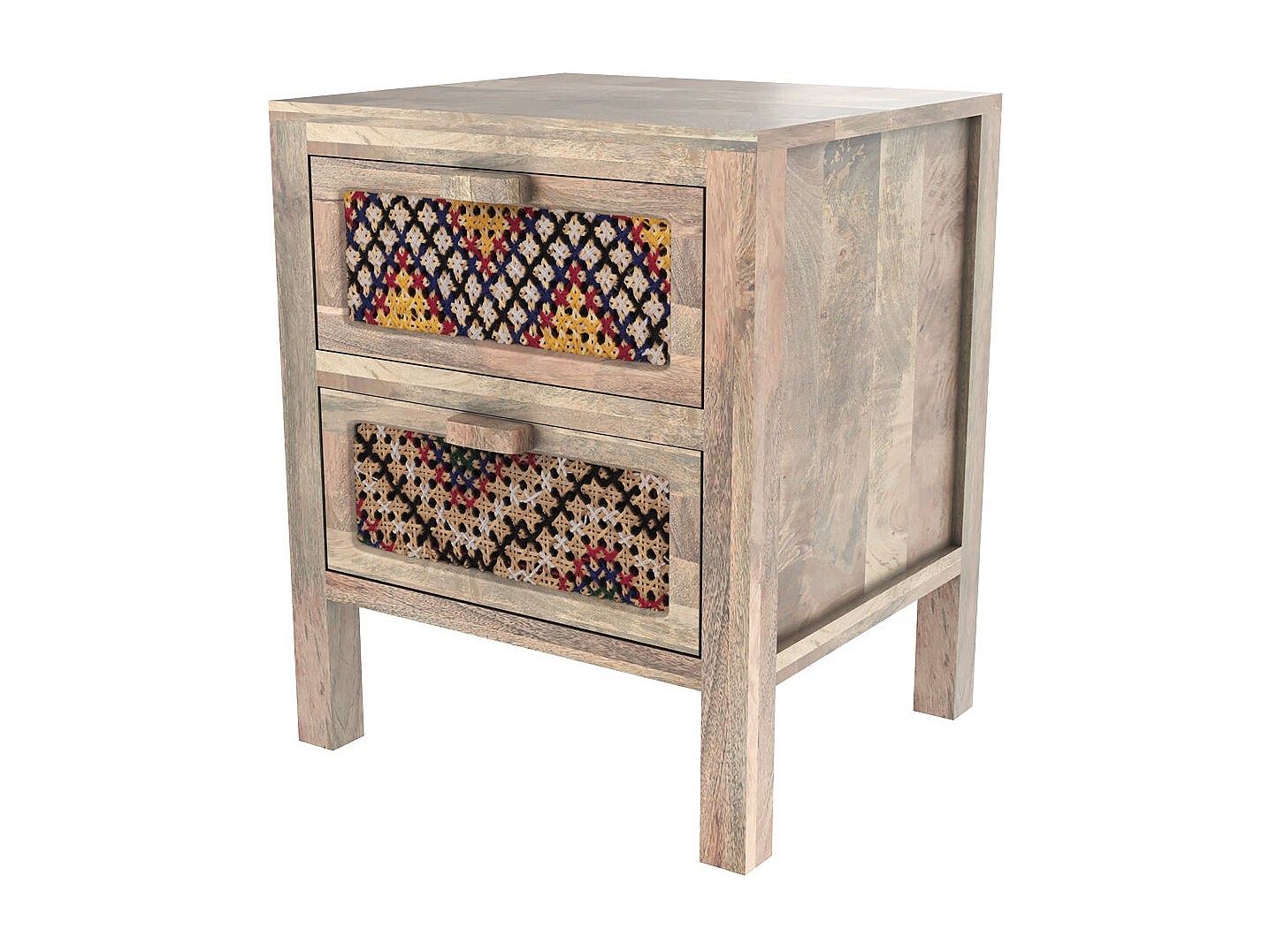 Table de chevet 2 tiroirs en manguier et cannage coloré - Massaï
