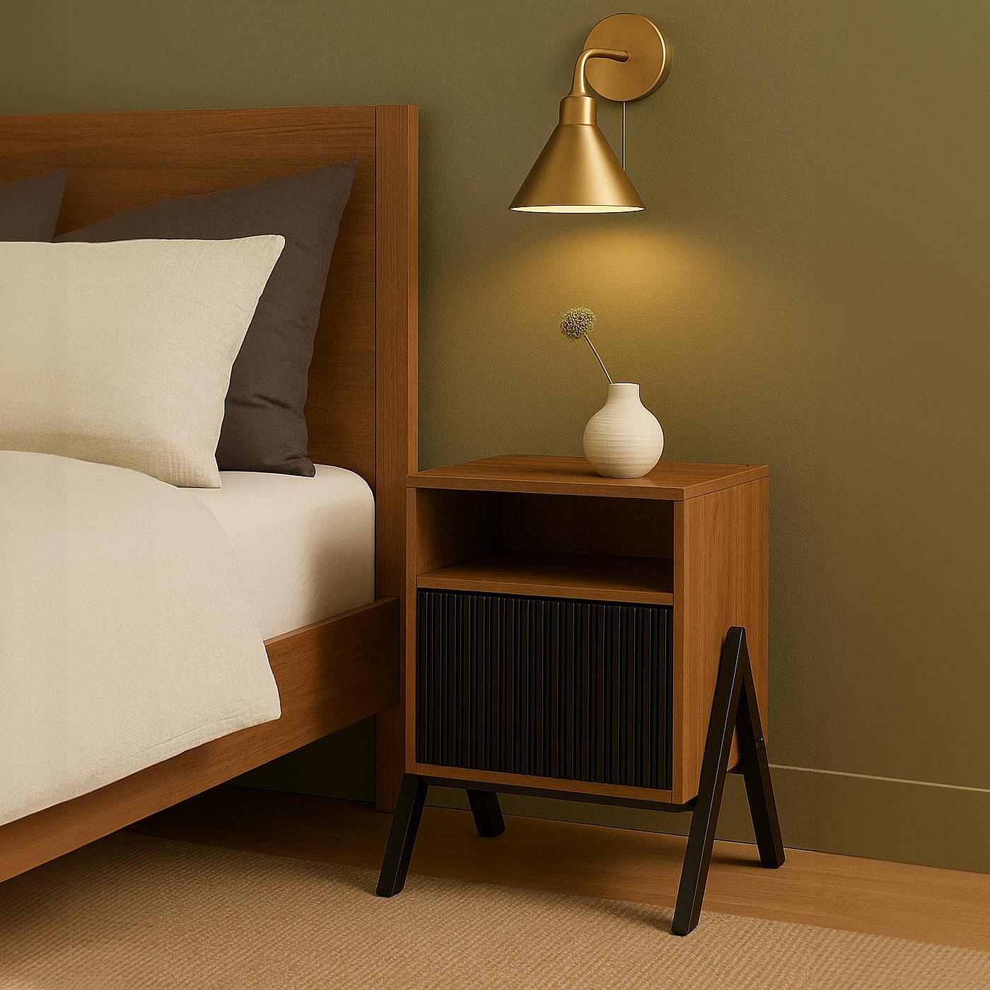 Table de chevet flottante en bois naturel-blanc 40x30 cm-Kanye