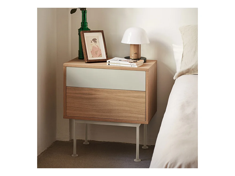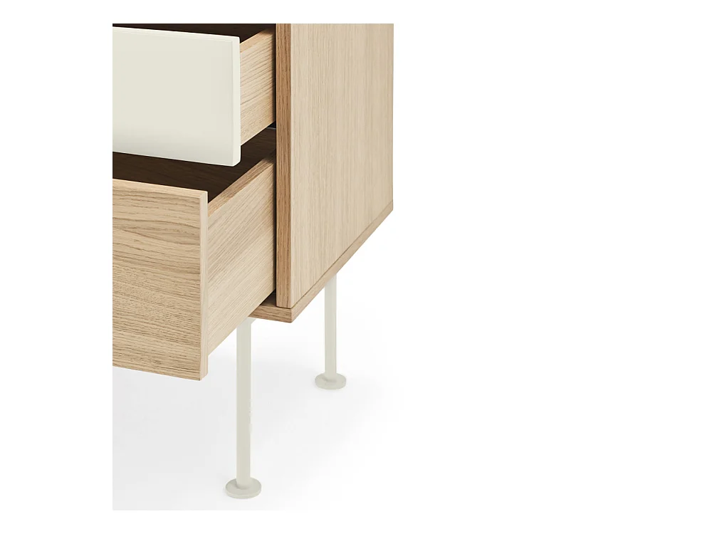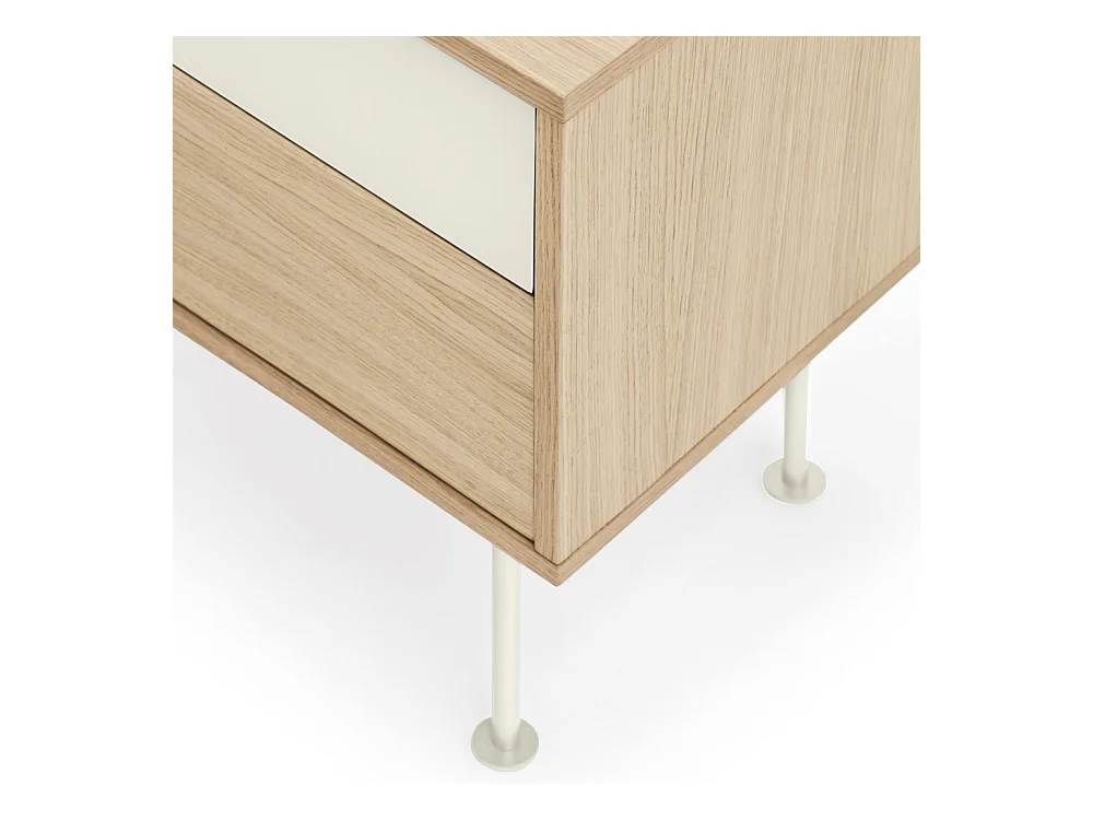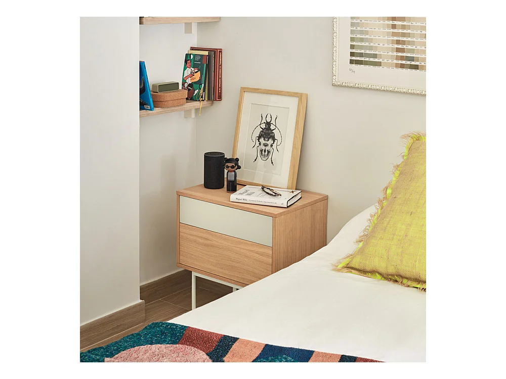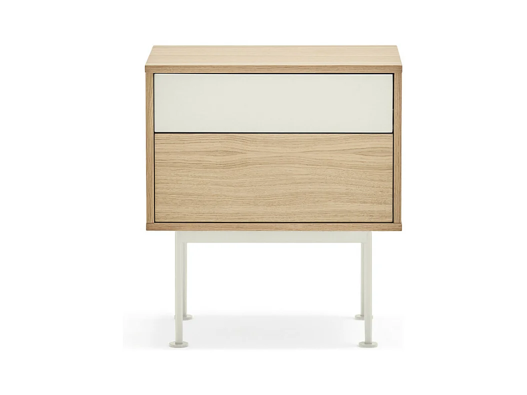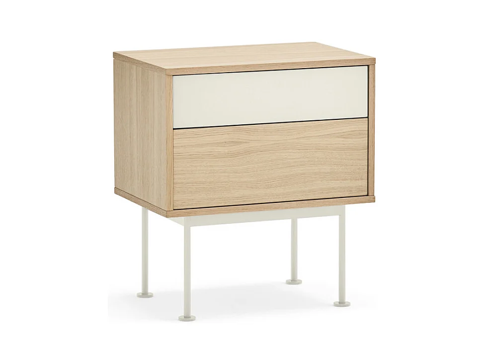 Yoko - Table de chevet 2 tiroirs en bois et métal : Couleur - Blanc