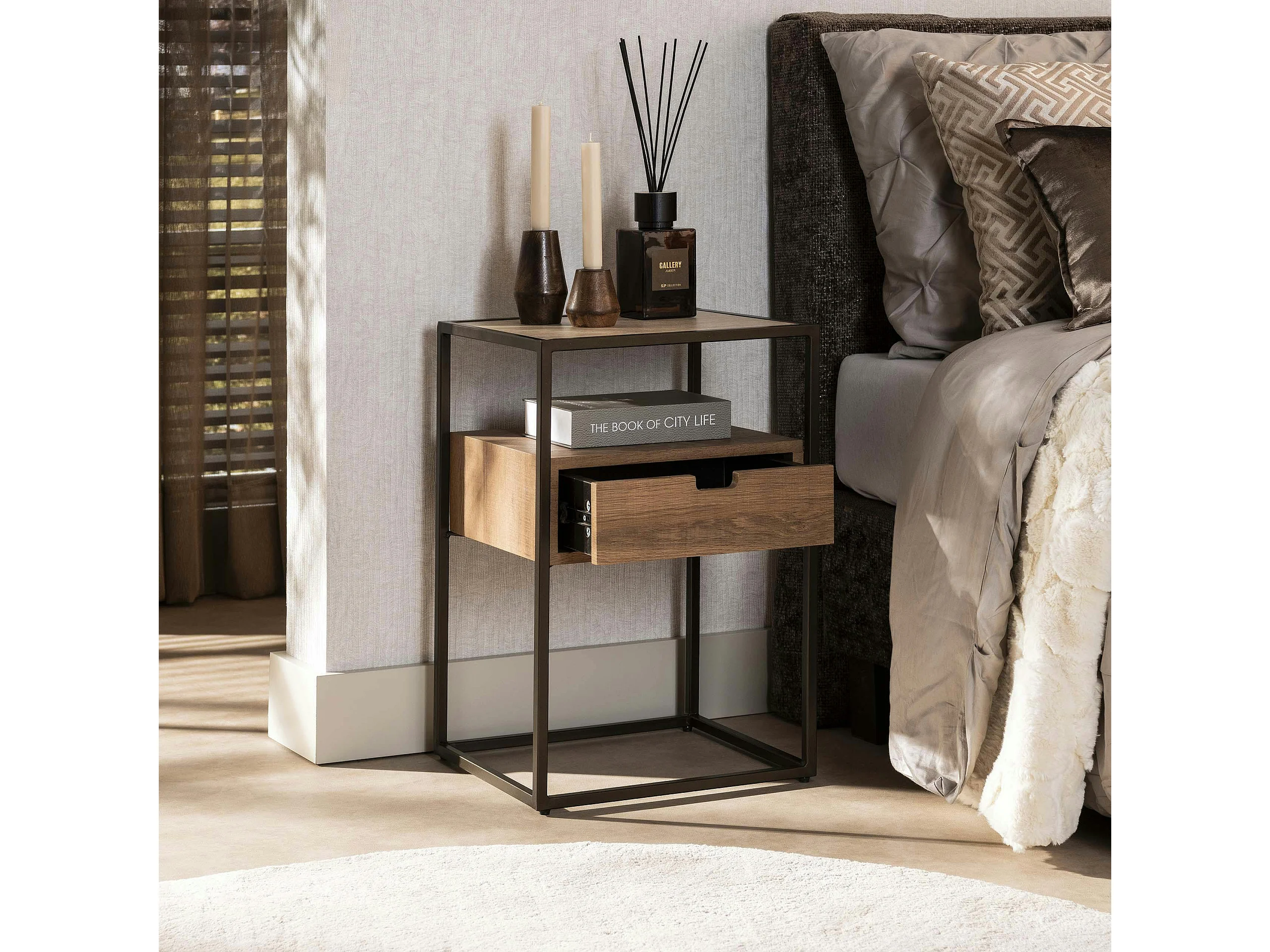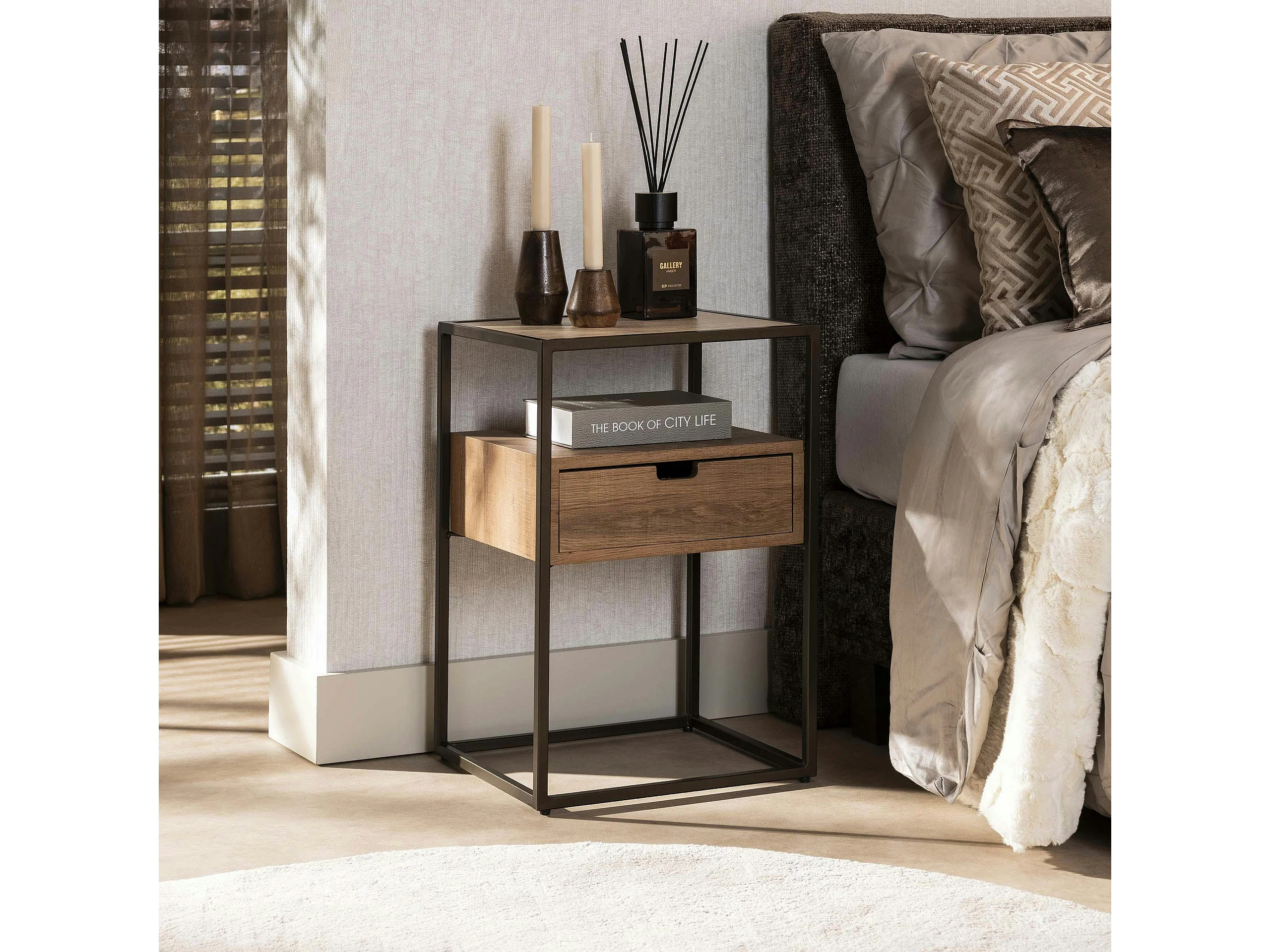 Table de chevet moderne effet travertin 1 tiroir ASCOLI