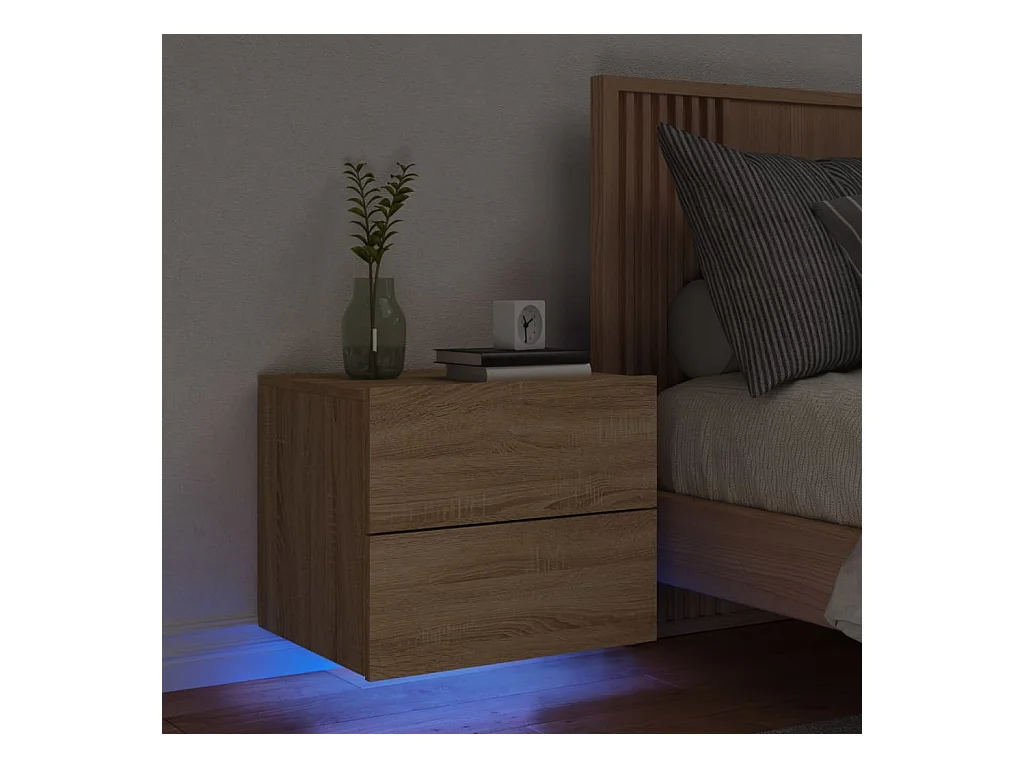 Table de chevet murale avec lumières LED chêne sonoma
