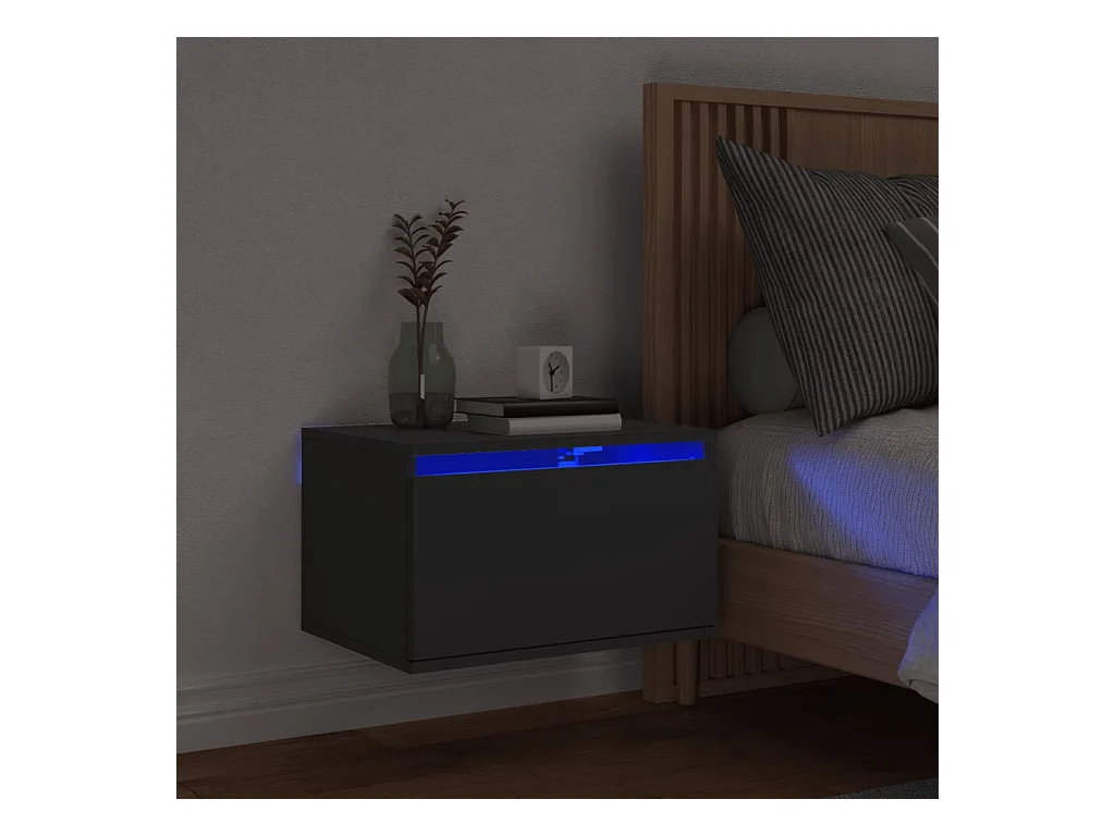 Table de chevet murale avec lumières LED noir