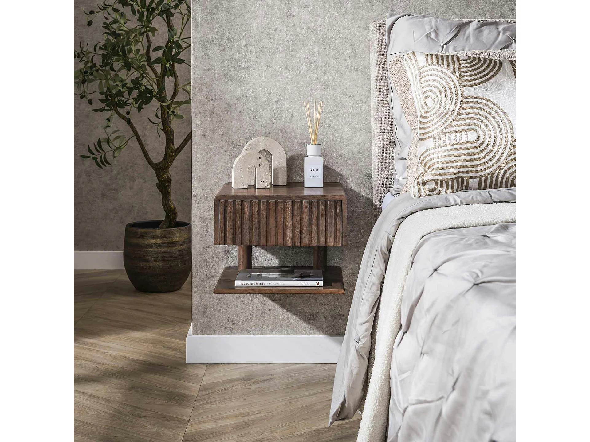 Table de chevet murale bois brun, tiroir rainuré (x2) NAKO