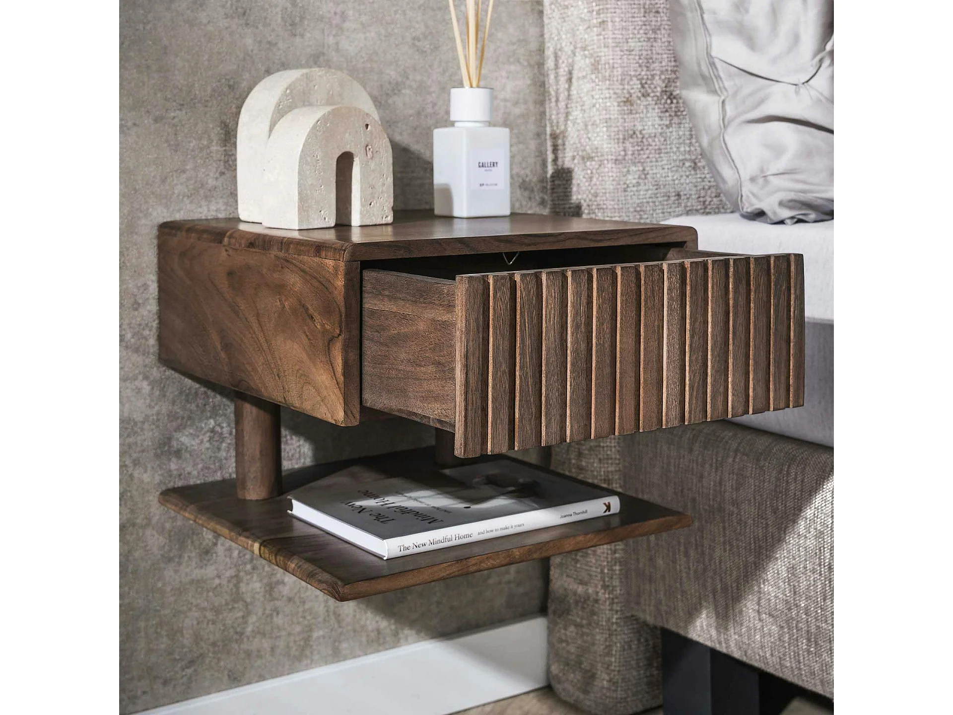 Table de chevet murale bois brun, tiroir & étagère NAKO