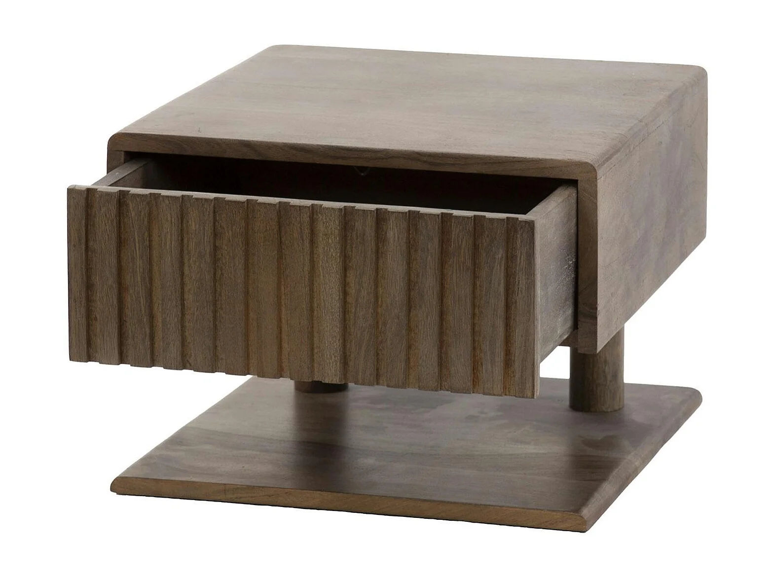 Table de chevet bois brun, tiroir rainuré & niche NAKO
