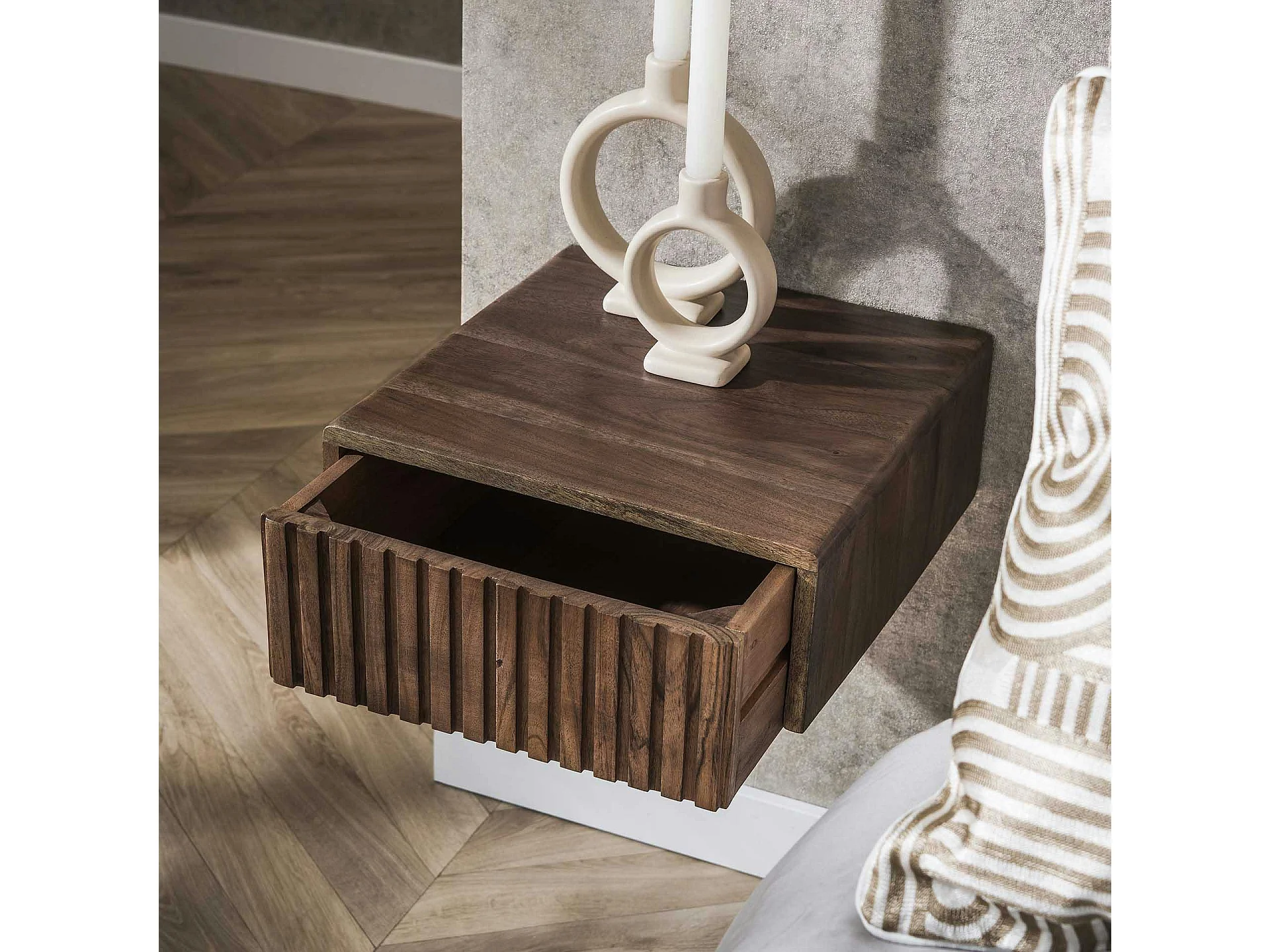 Table de chevet murale bois brun, tiroir rainuré (x2) NAKO