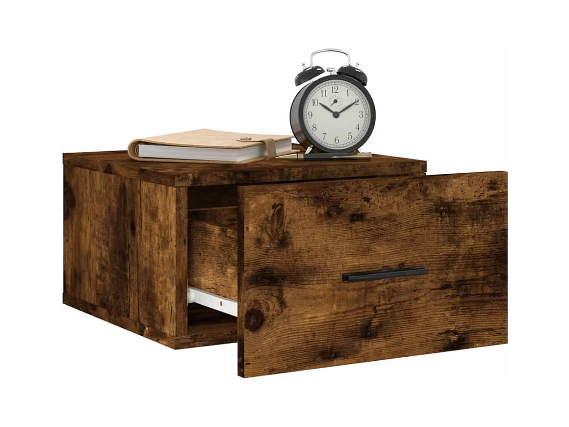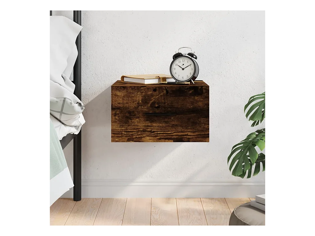 Table de chevet murale chêne fumé 35x35x20