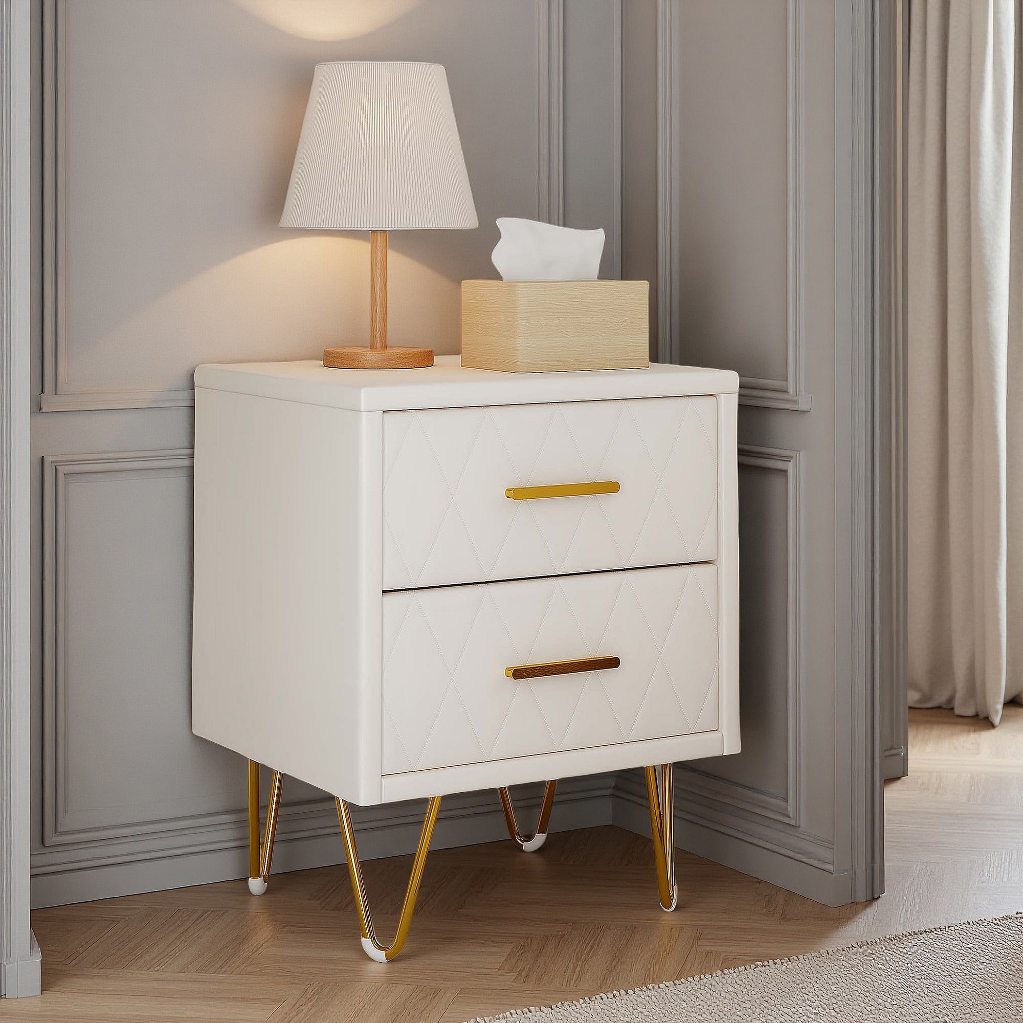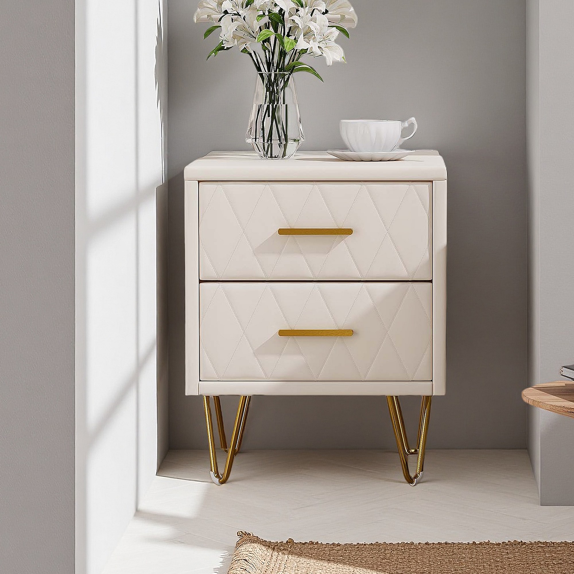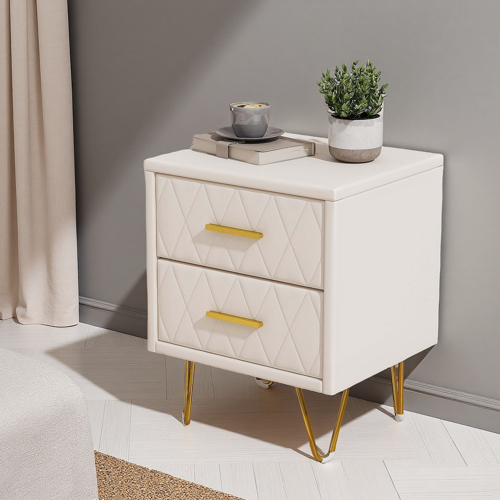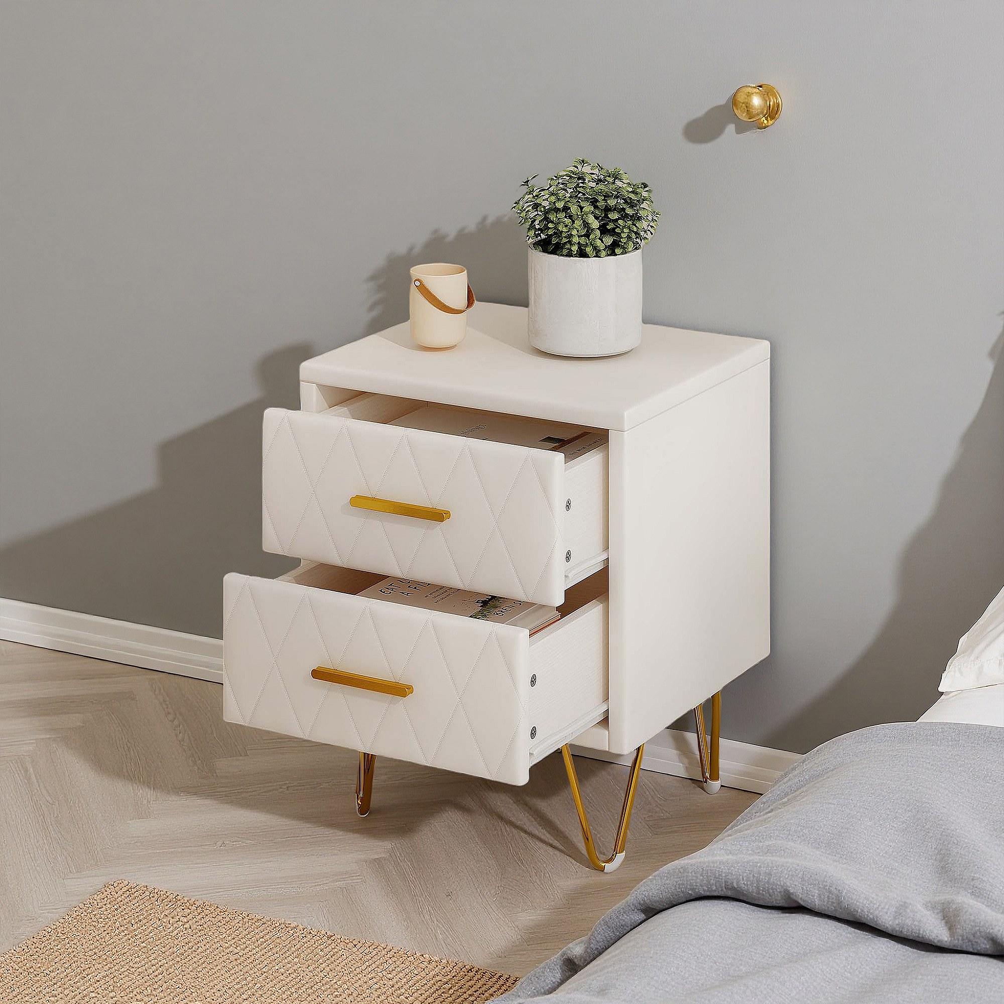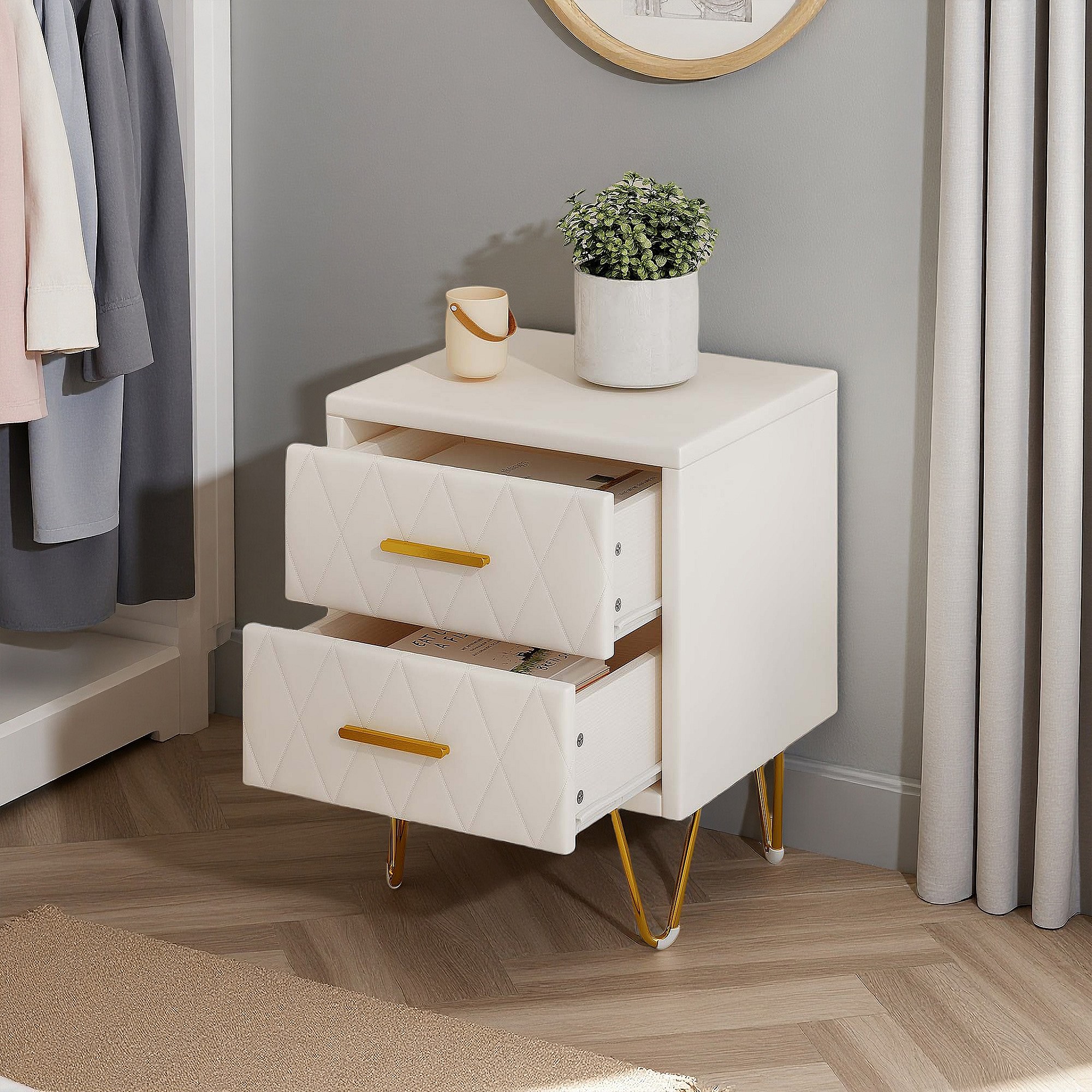 Table de Chevet - NEXU - Lot de 2 - 41x35x51 cm - Meuble de Nuit avec 2 tiroirs - Meuble de Chambre - tissu en PU - Style moderne - blanc