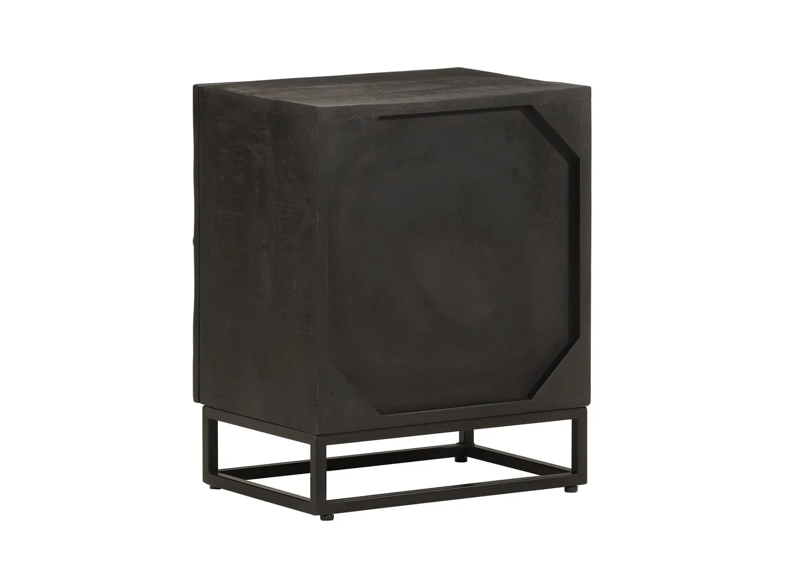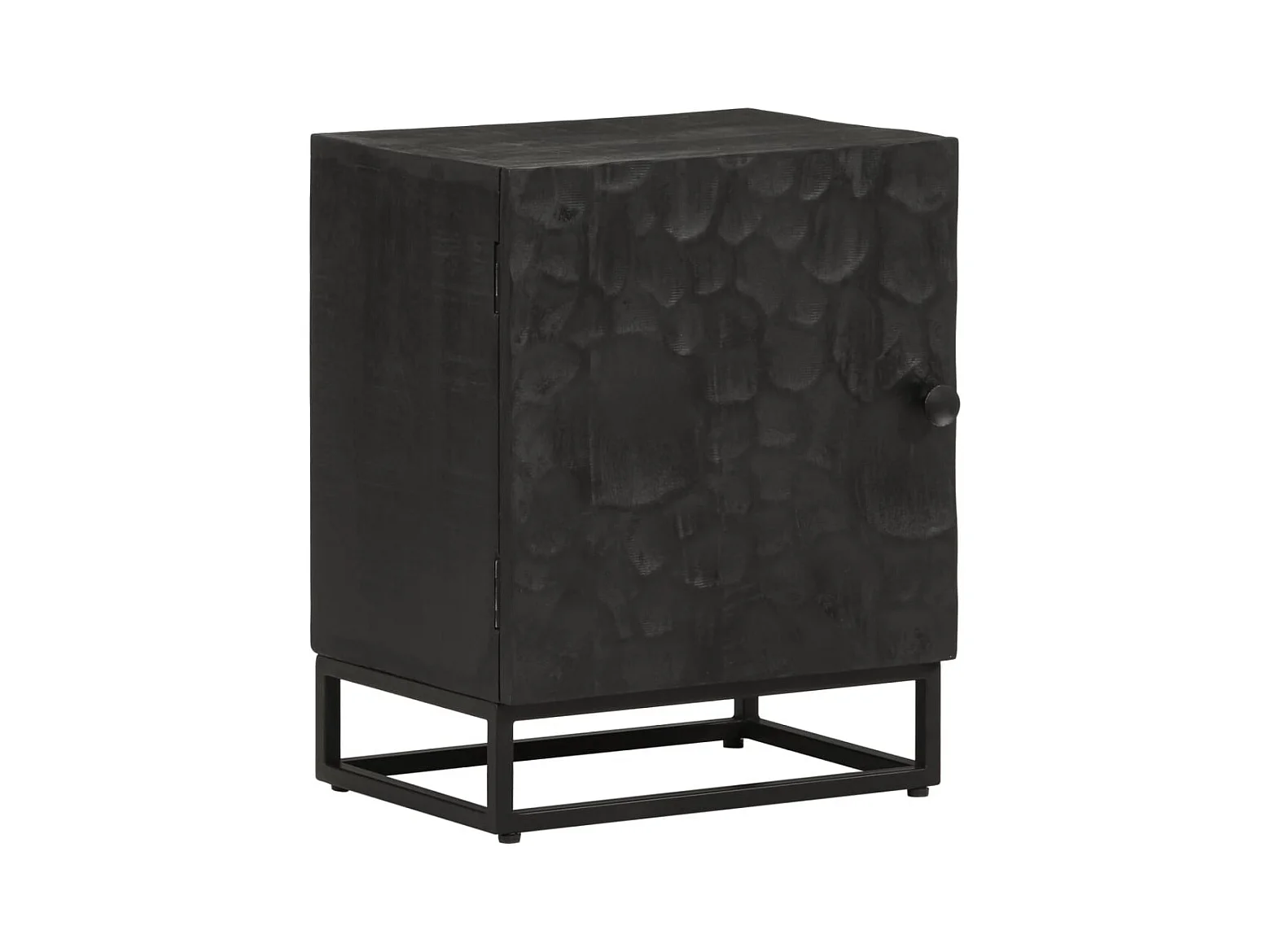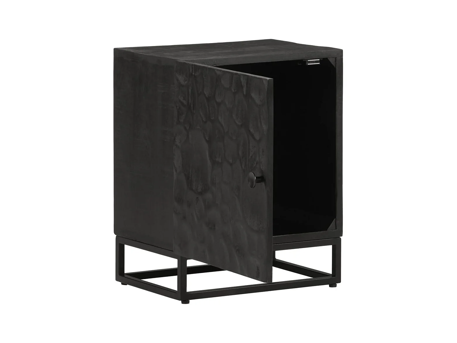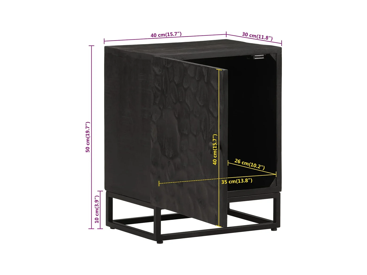 Table de chevet noir 40x30x50 cm bois massif manguier et fer