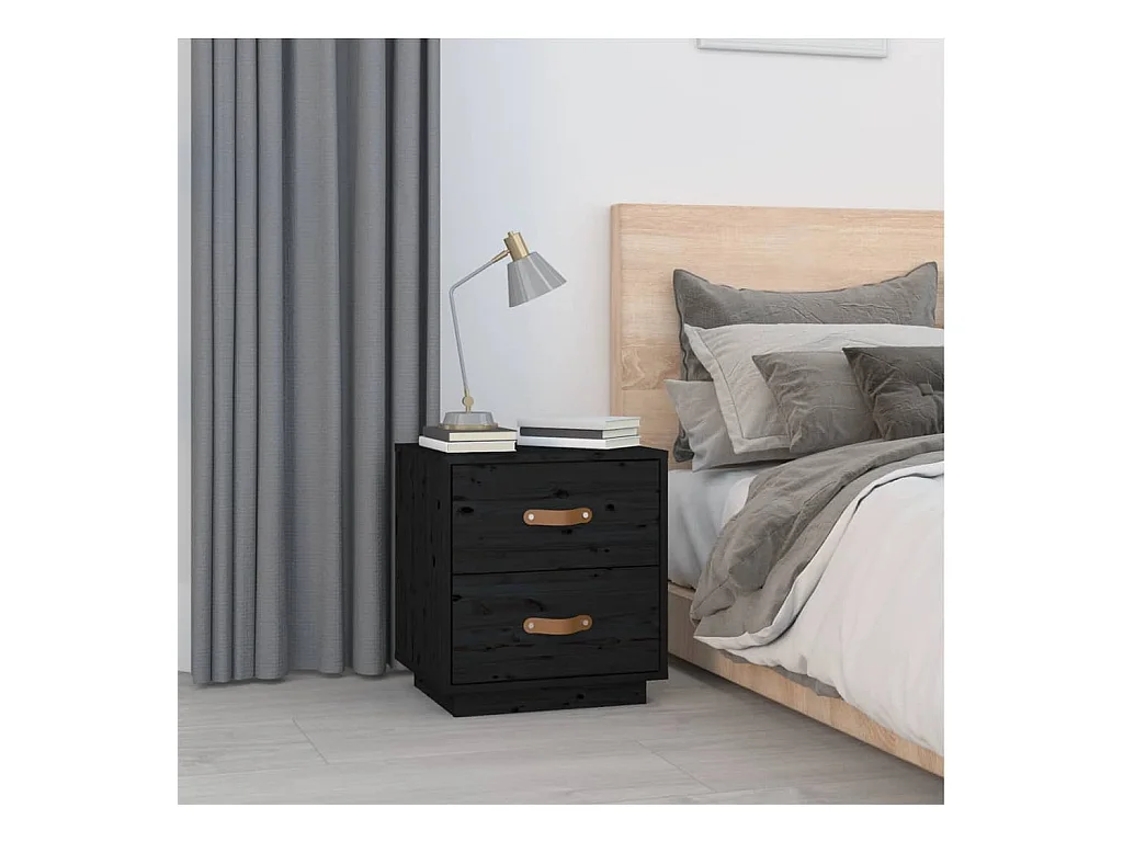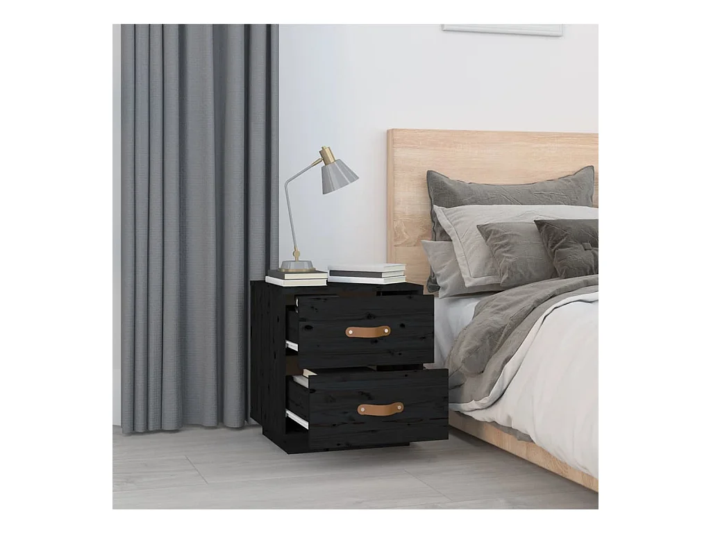 Table de chevet Noir 40x34x45 Bois de pin massif