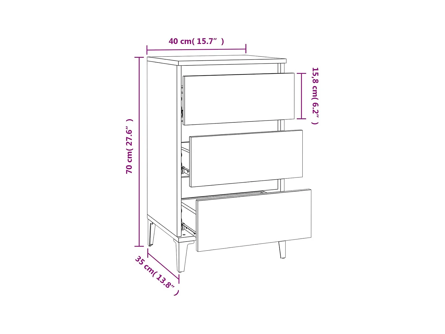 Table de chevet noir 40x35x70 bois d’ingénierie