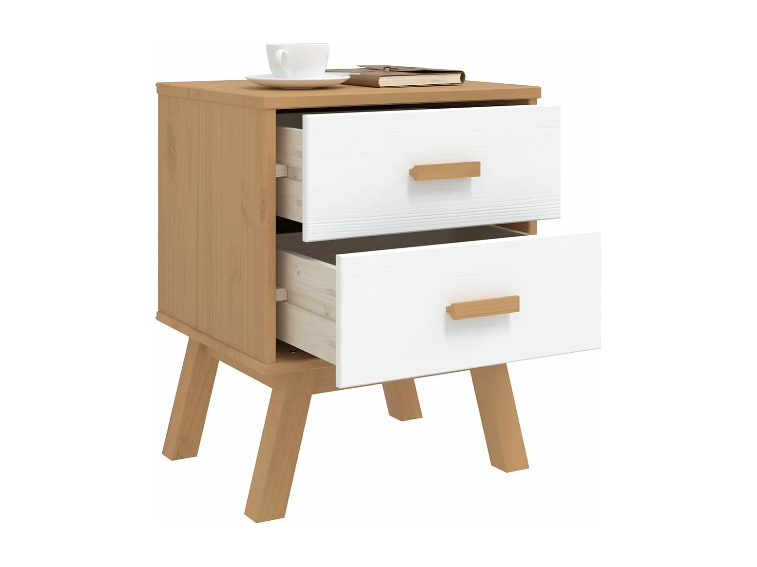 Table de chevet OLDEN blanc et marron bois de pin solide