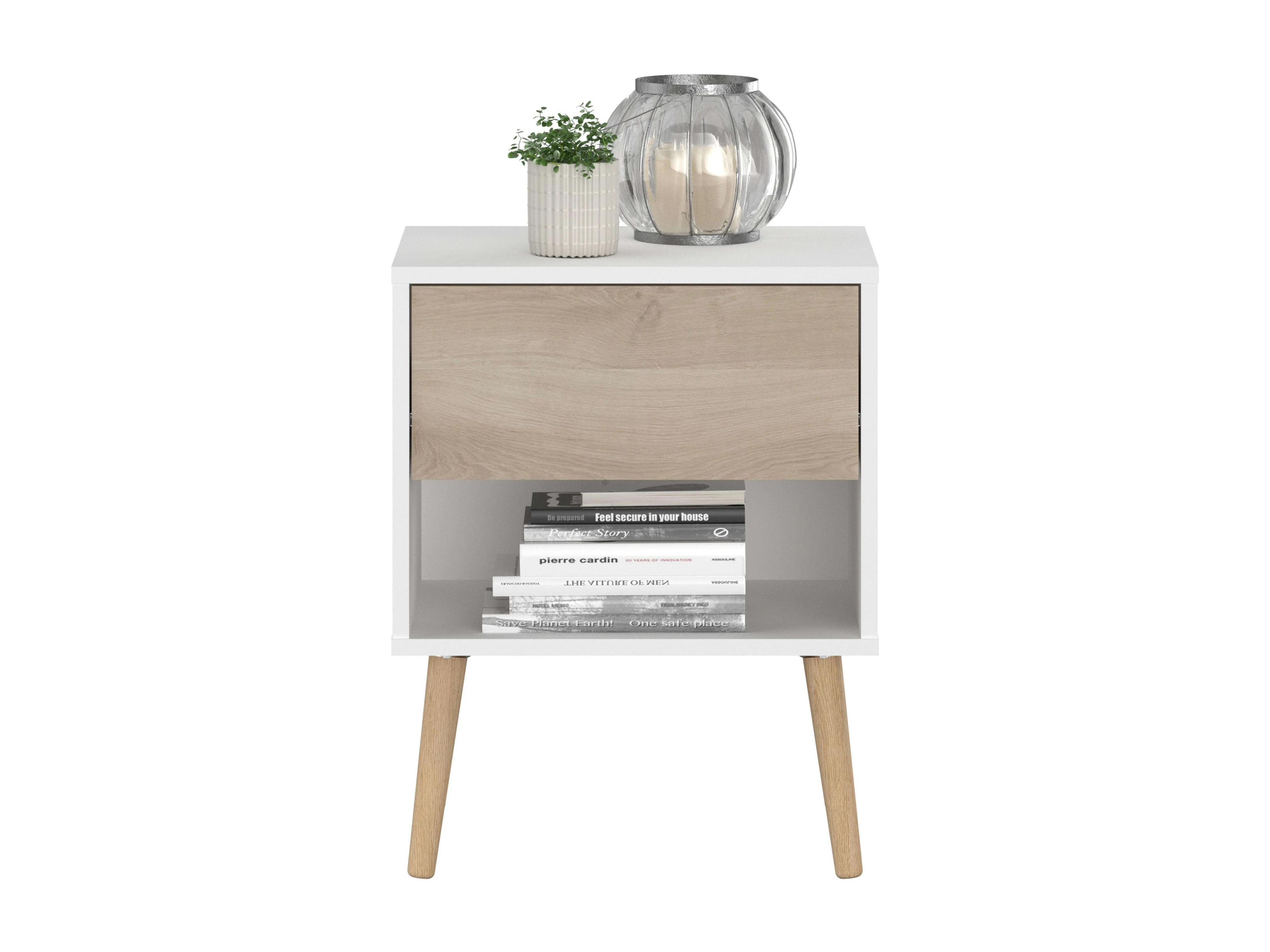 Table de chevet Osaka avec 1 tiroir, chêne japonais/blanc mat, 44x56x33 cm