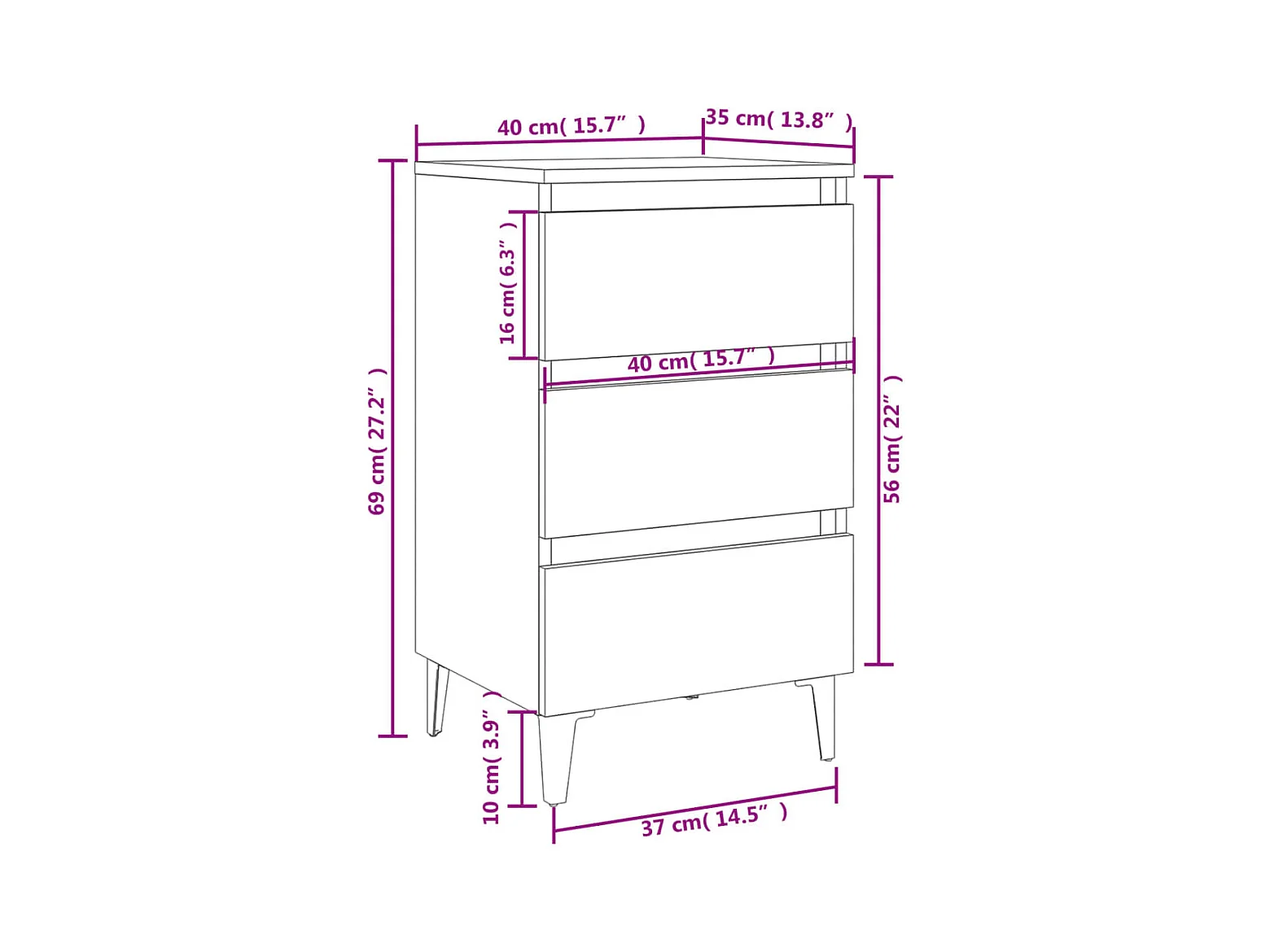 Table de chevet-Petite Table d'appoint avec pieds en métal noir 40x35x69 cm