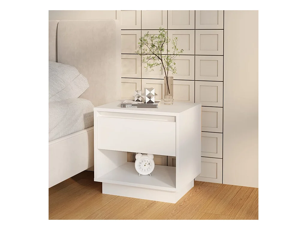 Table de chevet-Table d'appoint-Table de nuit VISNES blanc 45x40x50 cm bois d'ingénierie