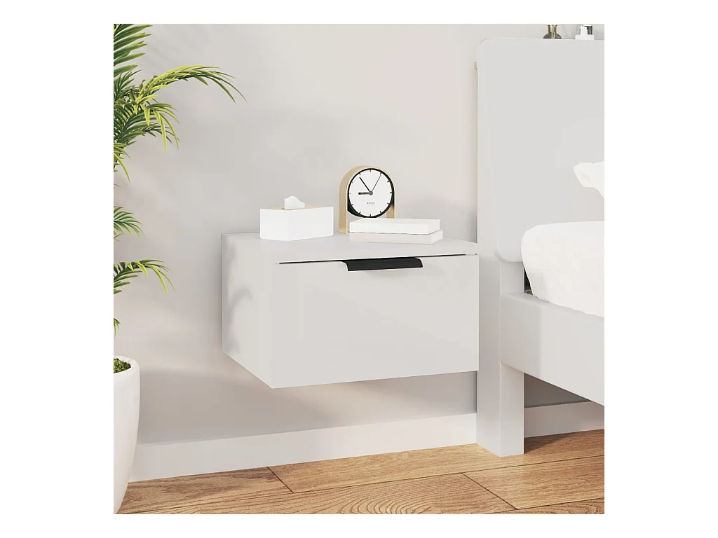 Table de chevet-Table d'appoint-Table de nuit murale Blanc brillant 50x30x47 cm