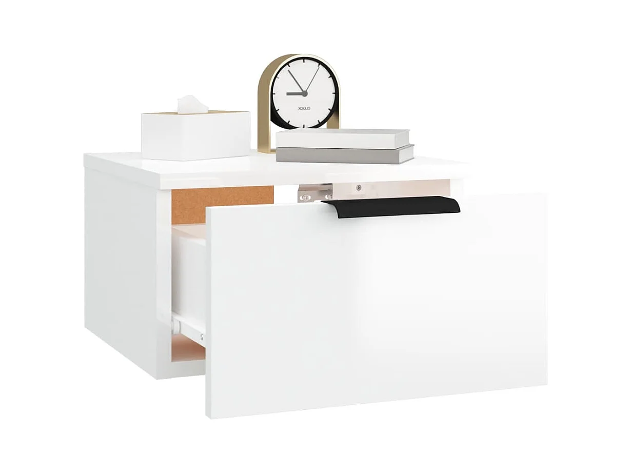 Table de chevet-Table d'appoint-Table de nuit murale blanc brillant 41,5x36x53 cm