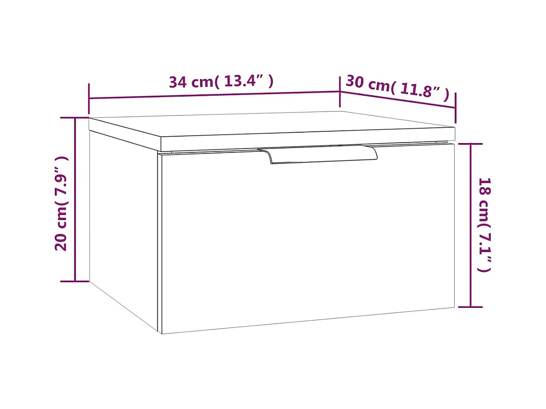 Table de chevet-Petite Table d'appoint-Table de nuit murale blanc brillant 34x30x20 cm