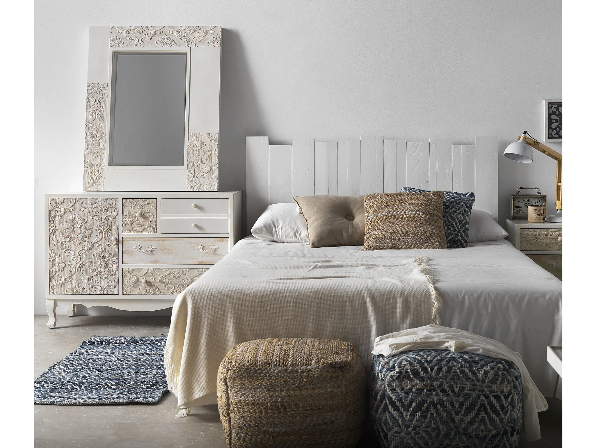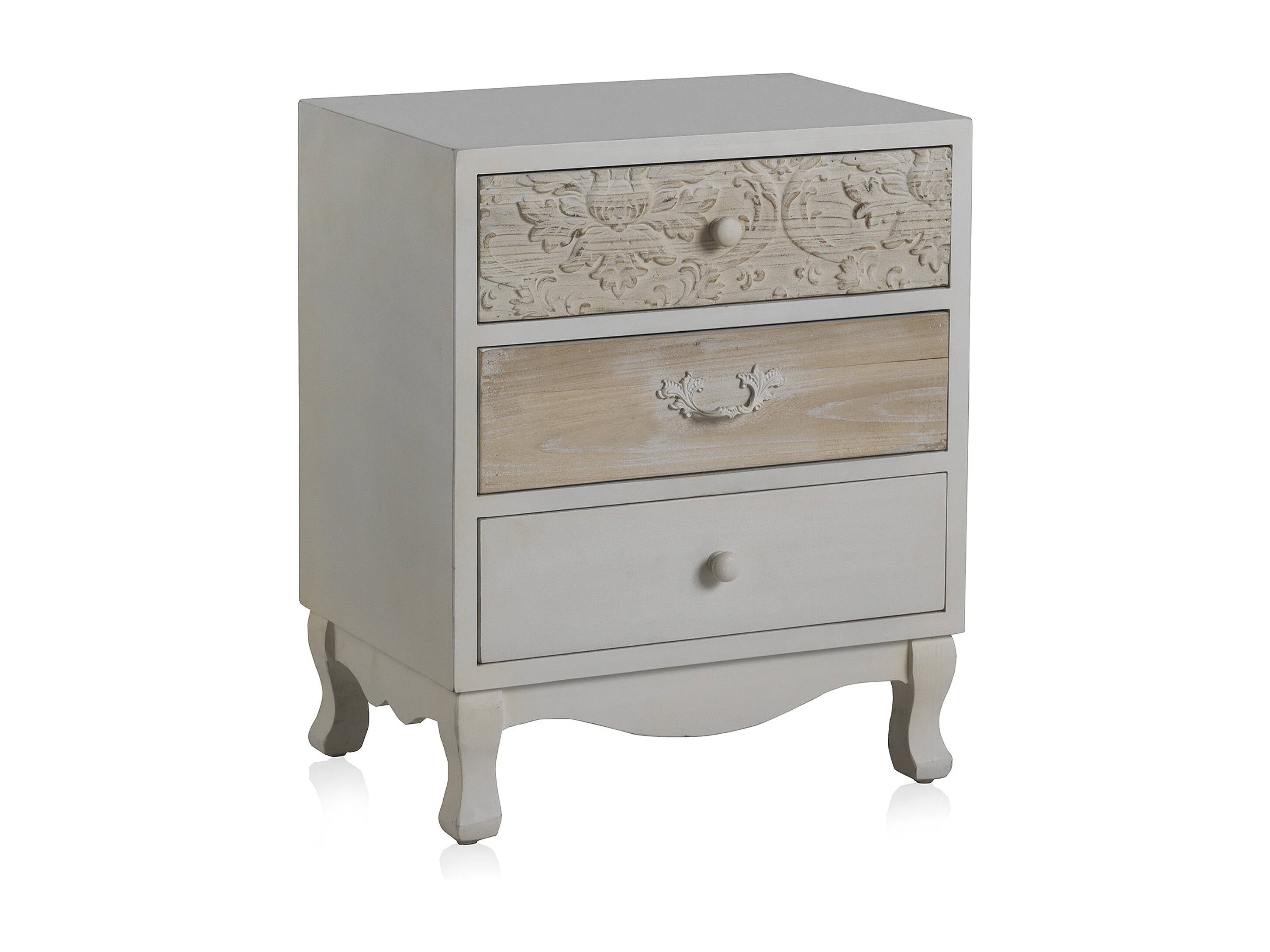 Table de chevet plaquée en sapin blanc avec 3 tiroirs