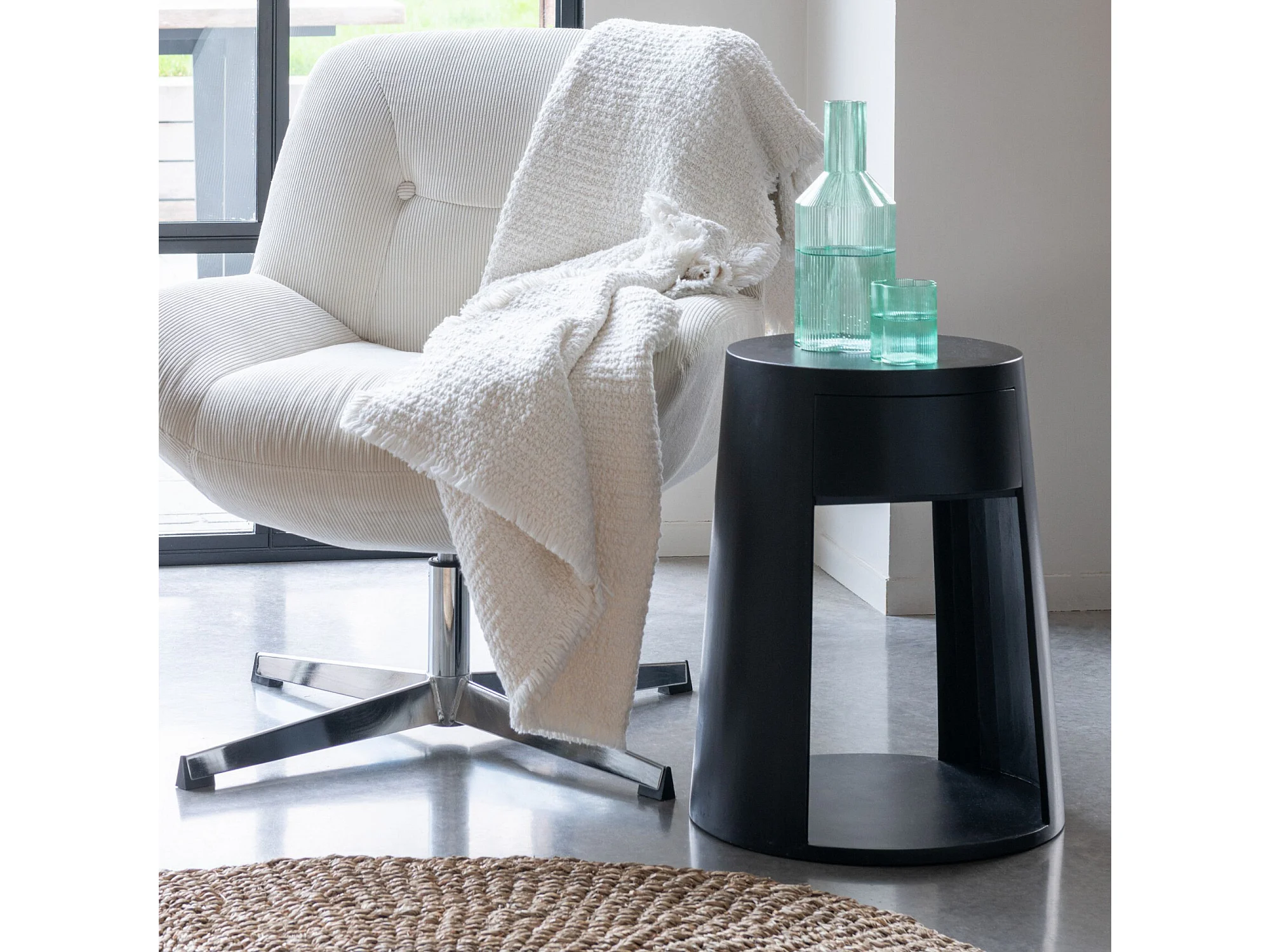Table de chevet ronde 1 tiroir en manguier - DARWIN