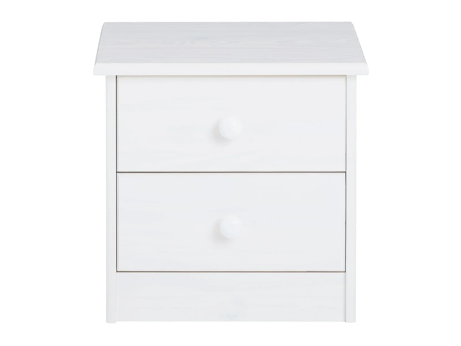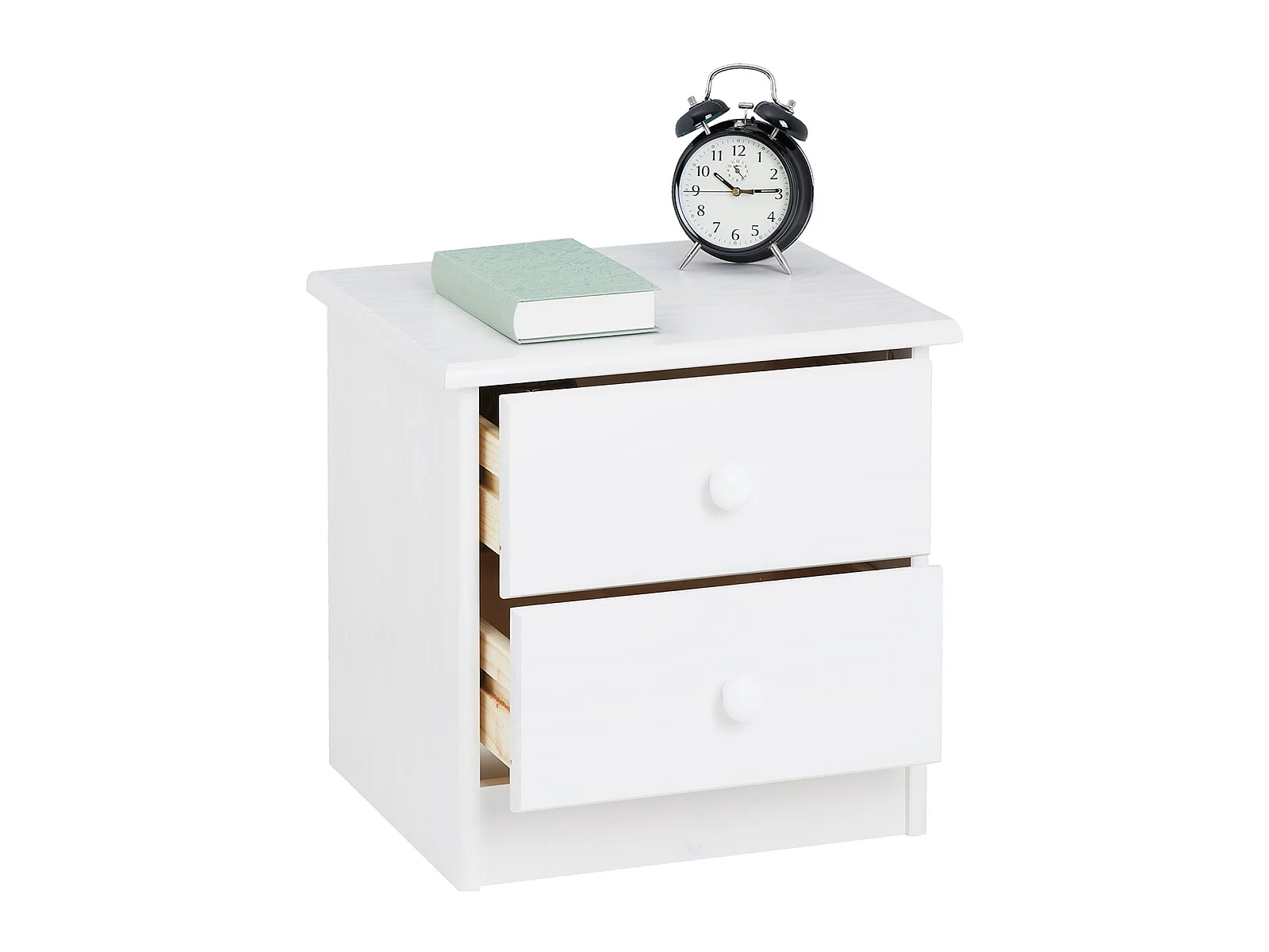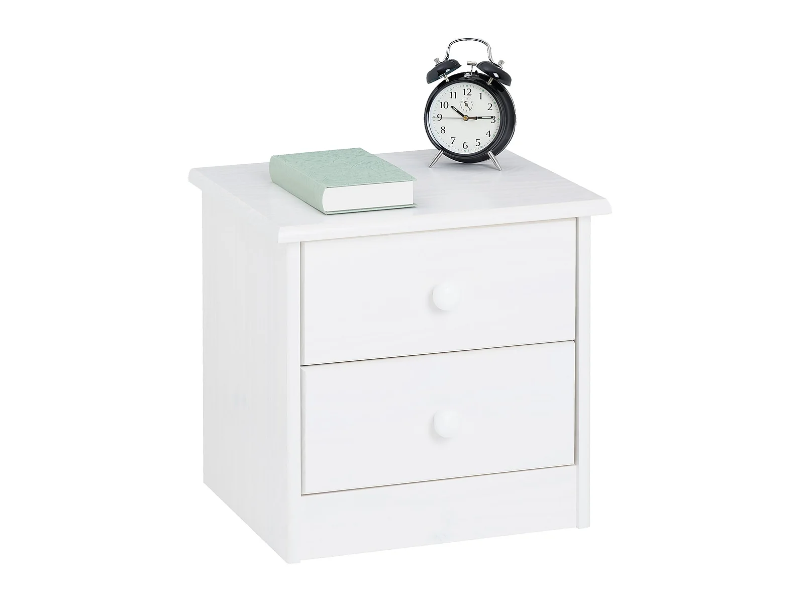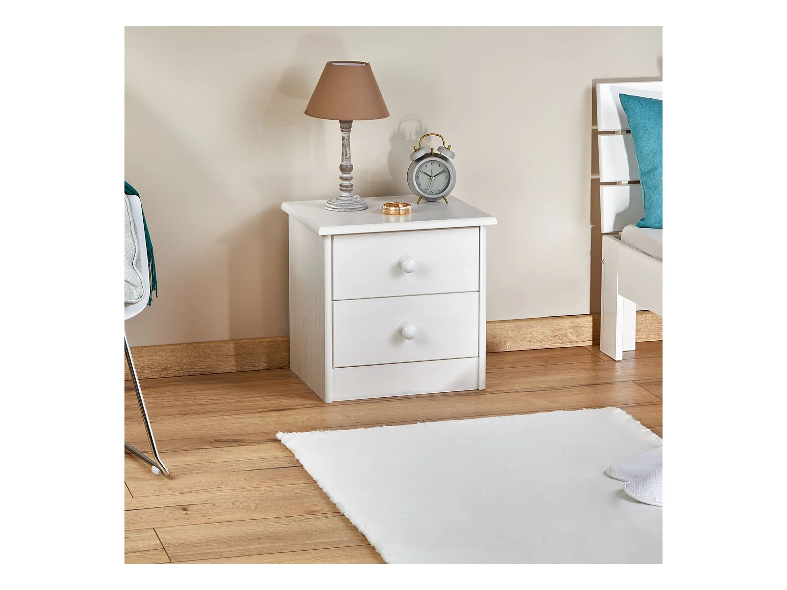Table de chevet RONDO avec 2 tiroirs, table de nuit en pin massif, chevet en bois lasuré blanc