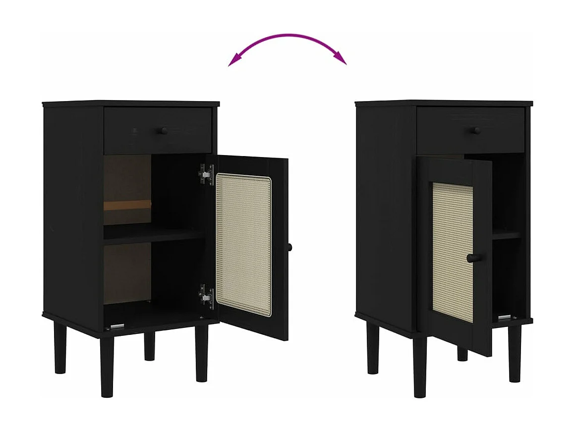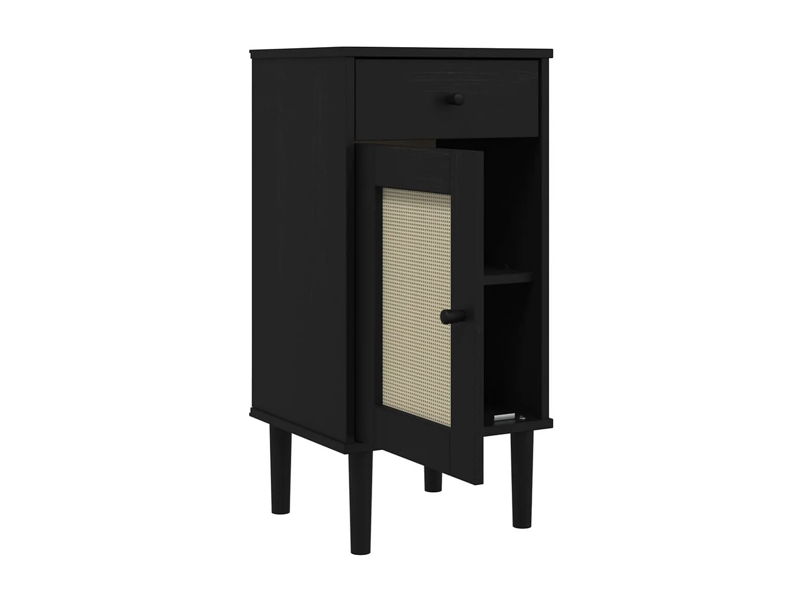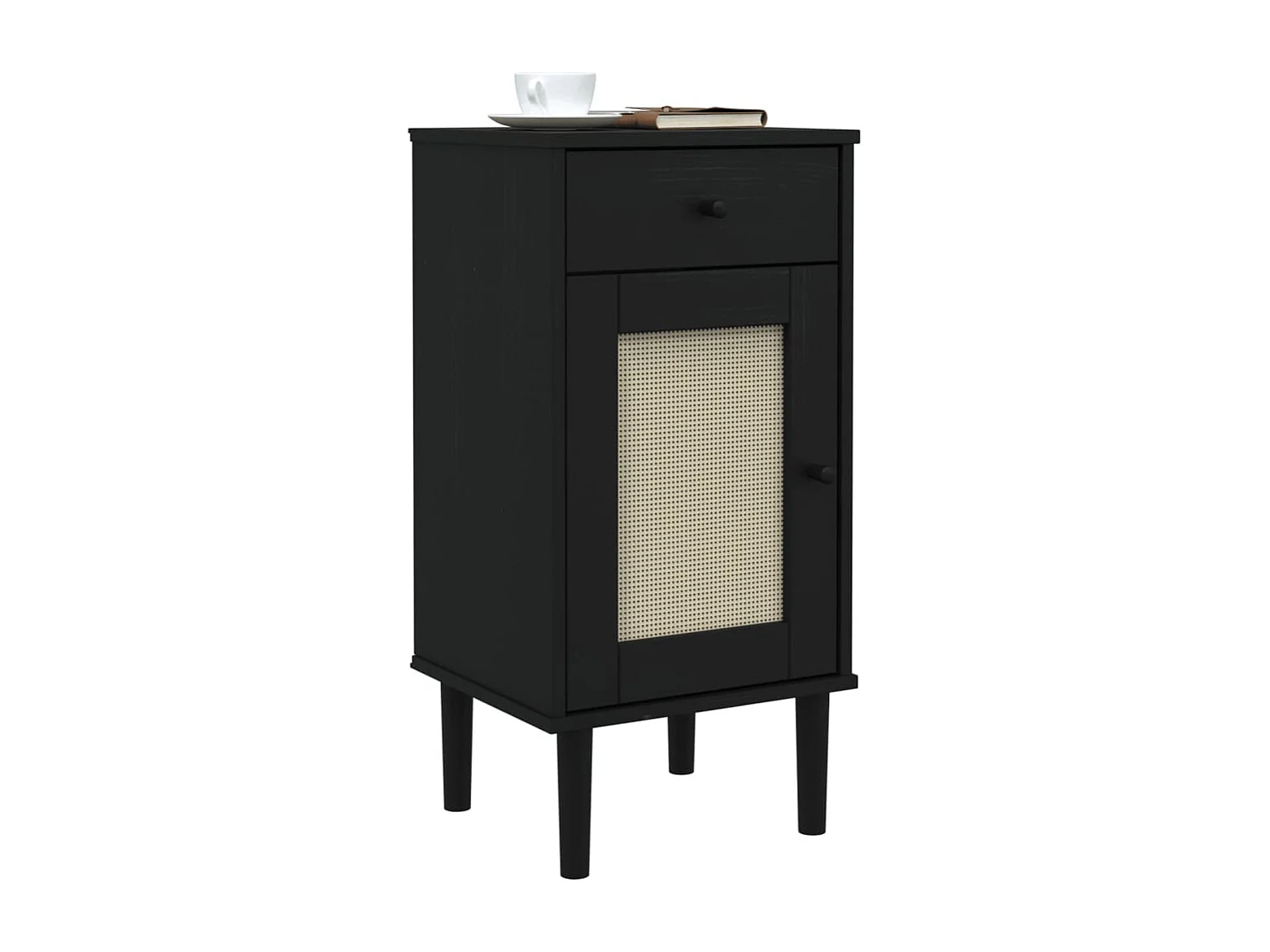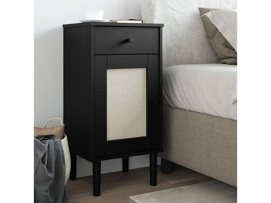 Table de chevet SENJA aspect de rotin noir bois de pin massif