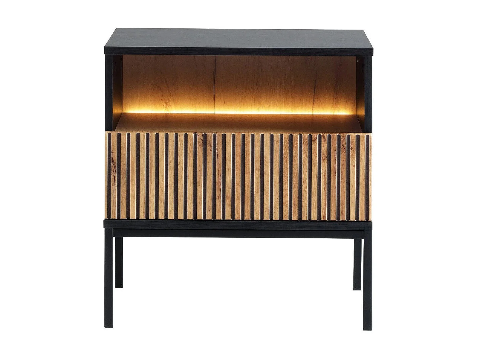 Table de chevet Soferi 110, Chêne wotan|Noir, 56x54x39cm, Stratifié