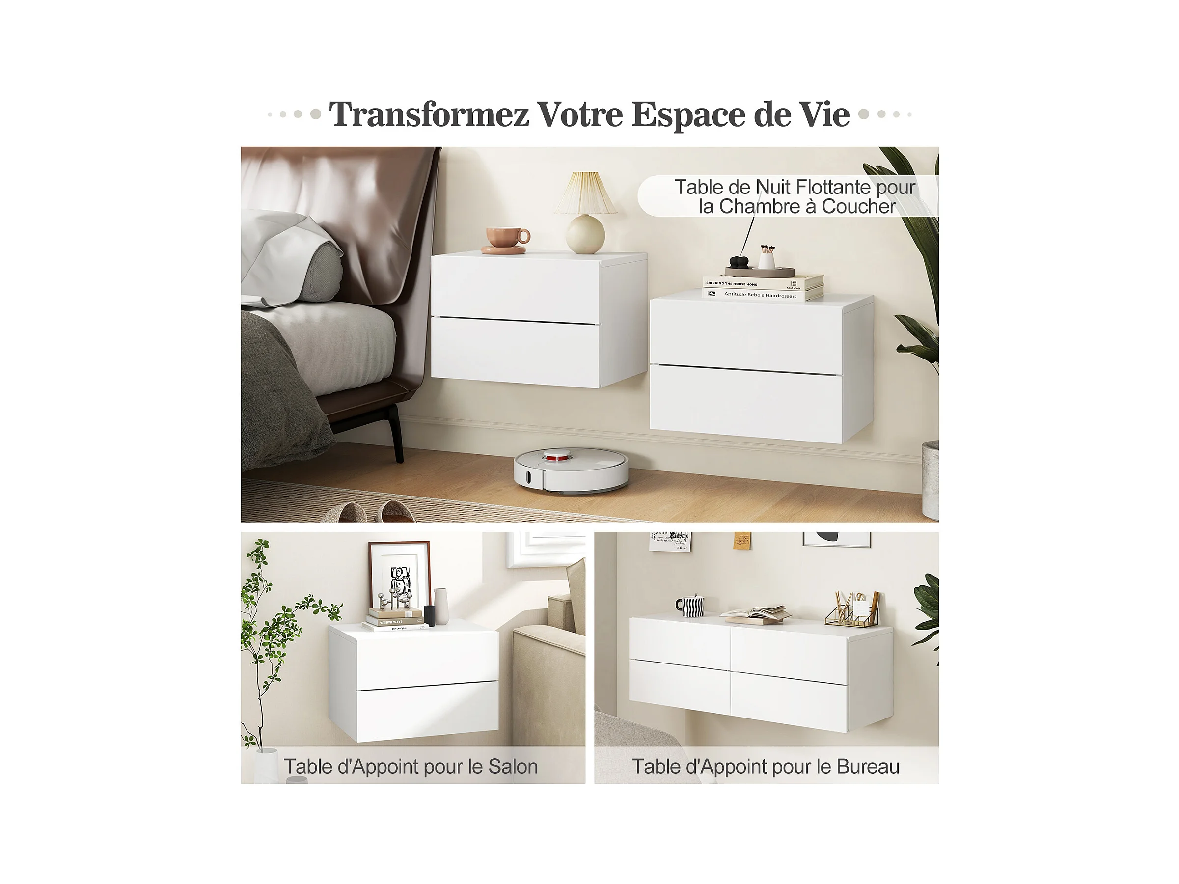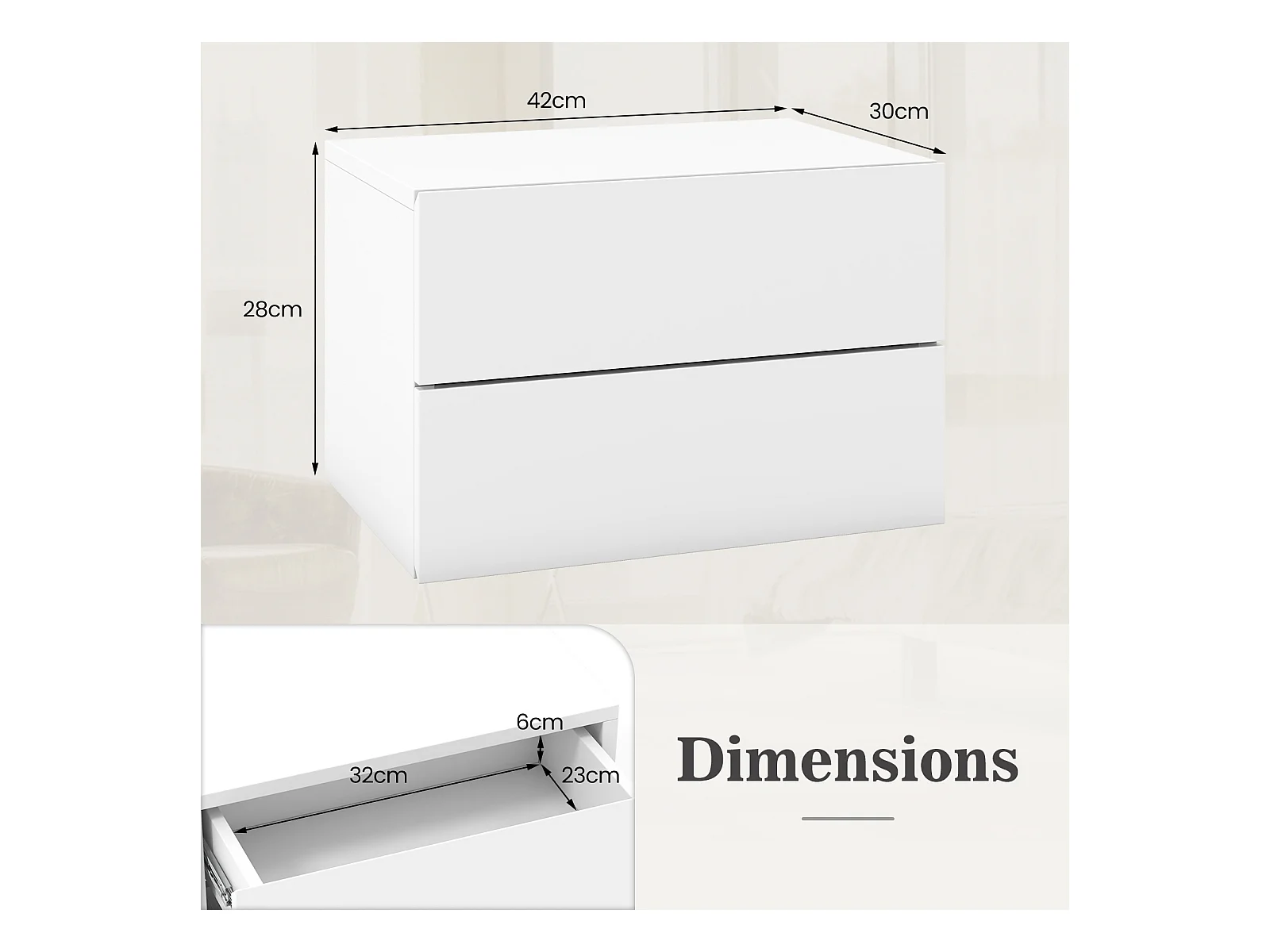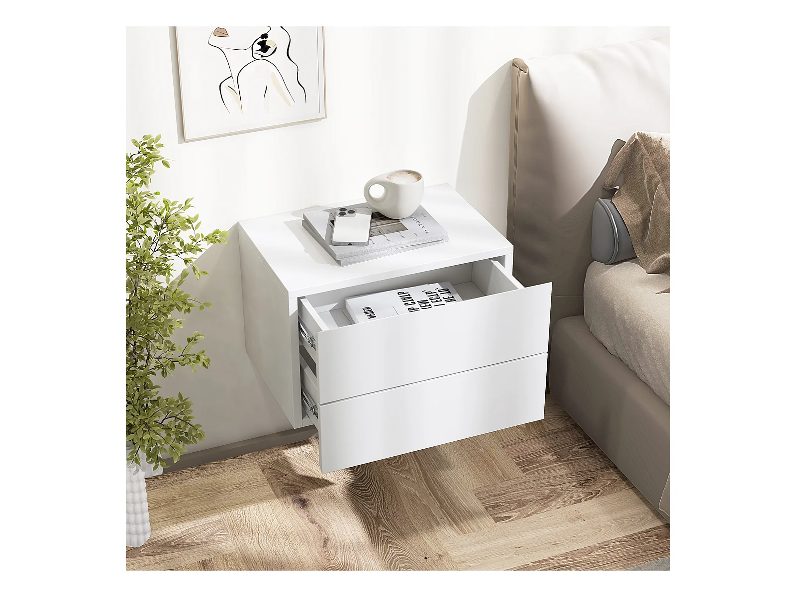 Table de Chevet Suspendue, avec 2 Tiroirs, Table de Nuit Flottante Moderne pour Chambre, Salon, Bureau, Blanc