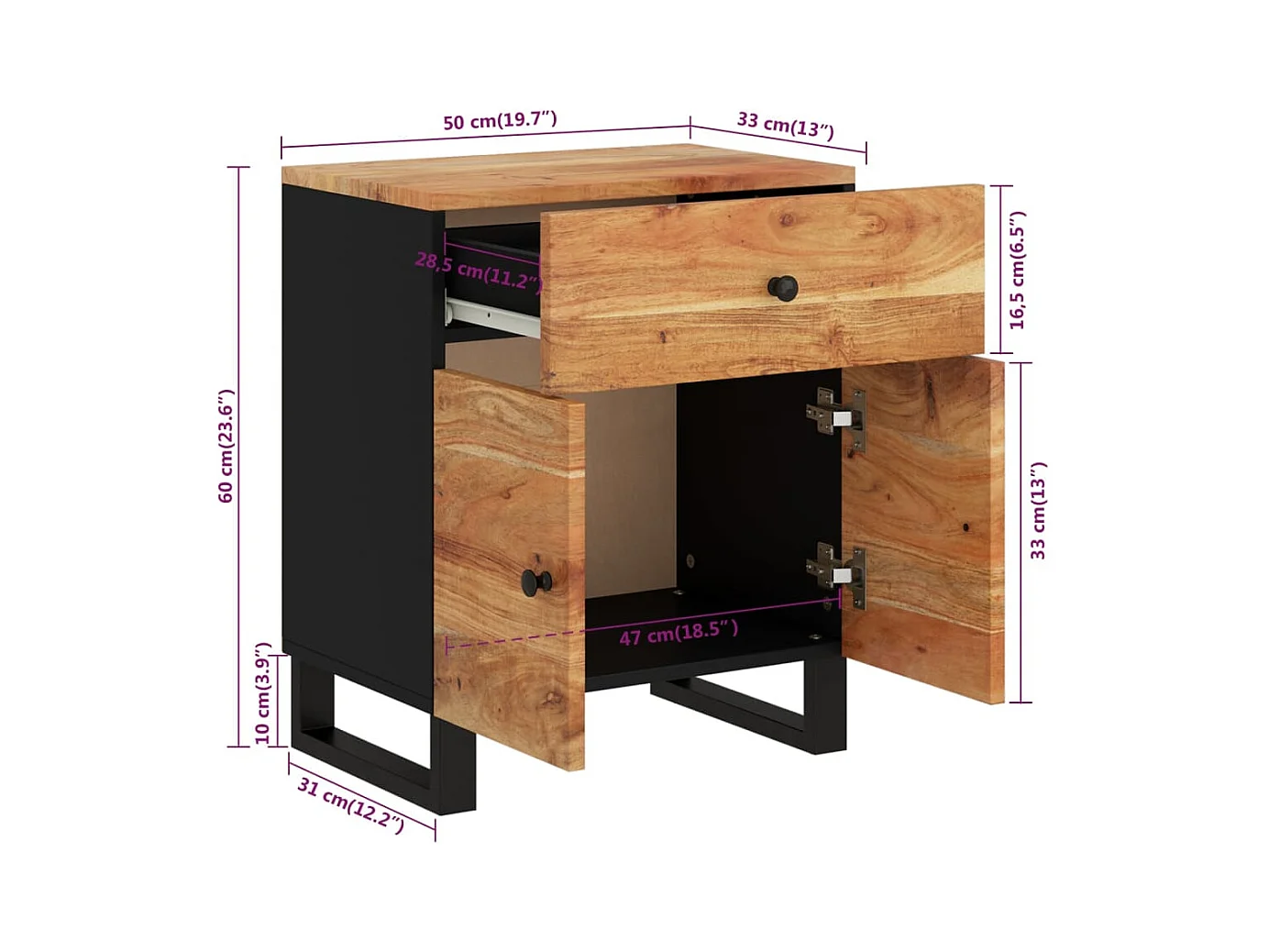 Table de chevet-Table d'appoint 50x33x60cm Bois d'acacia solide et d'ingénierie