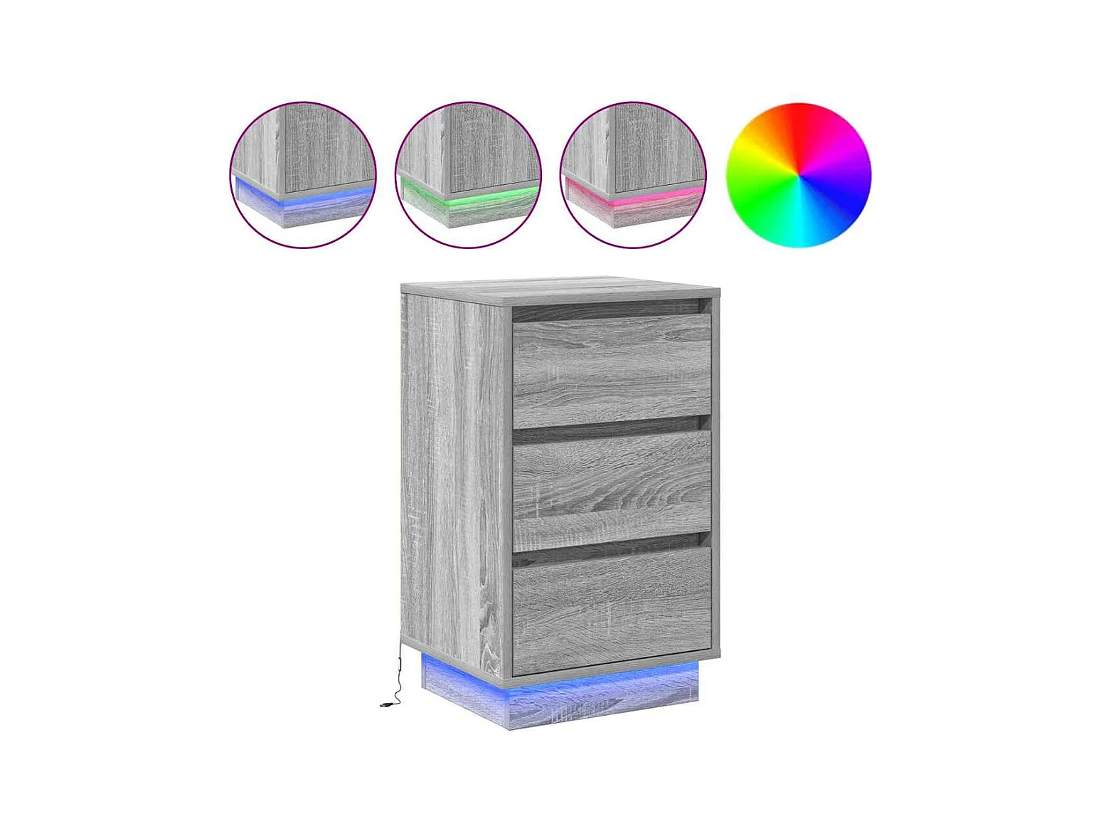 Table de chevet Étroite-Table d'appoint avec 3 tiroirs gris béton 39x35x65 cm