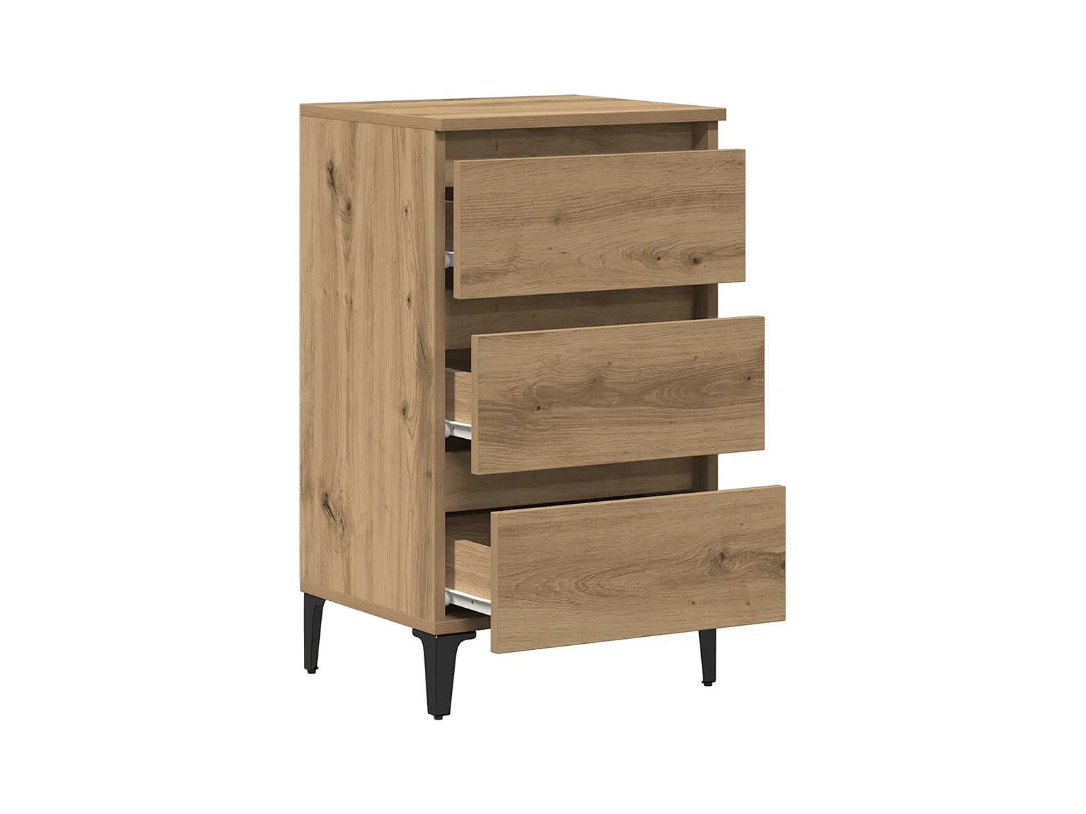 Table de chevet-Table d'appoint avec pieds en métal chêne artisanal 40x35x69 cm
