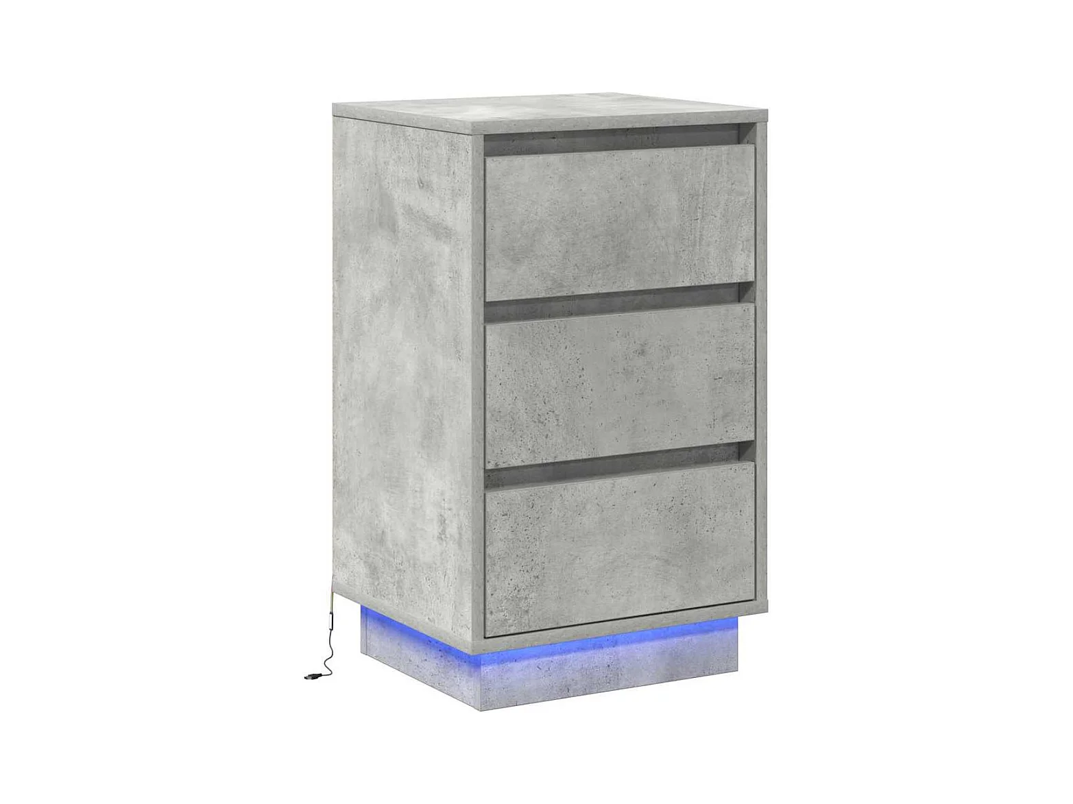 Table de chevet Étroite-Table d'appoint avec 3 tiroirs gris béton 39x35x65 cm