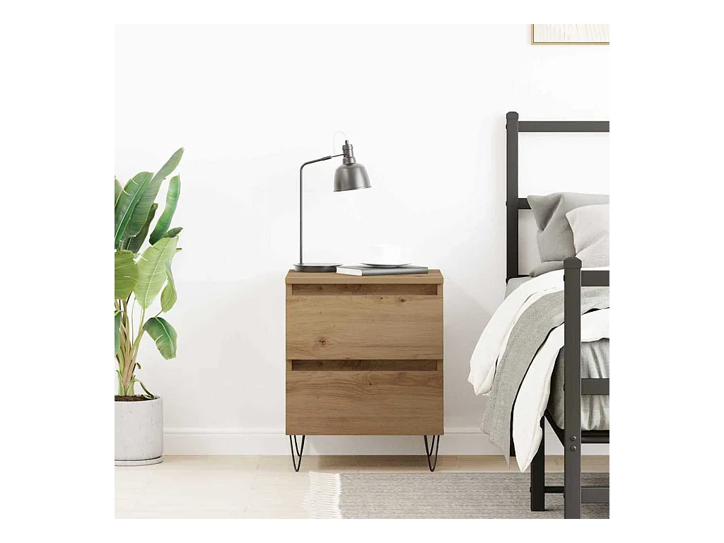 Table de chevet-Table d'appoint avec pieds en métal chêne artisanal 40x35x69 cm