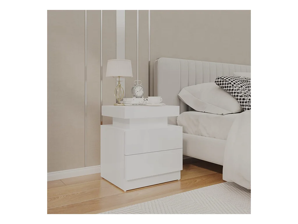 Table de chevet-Table de nuit pour Chambre blanc brillant 40x35x47,5 cm bois d’ingénierie