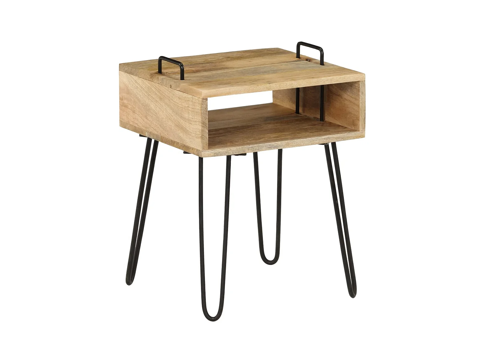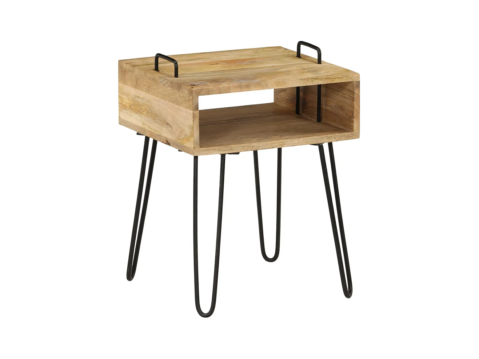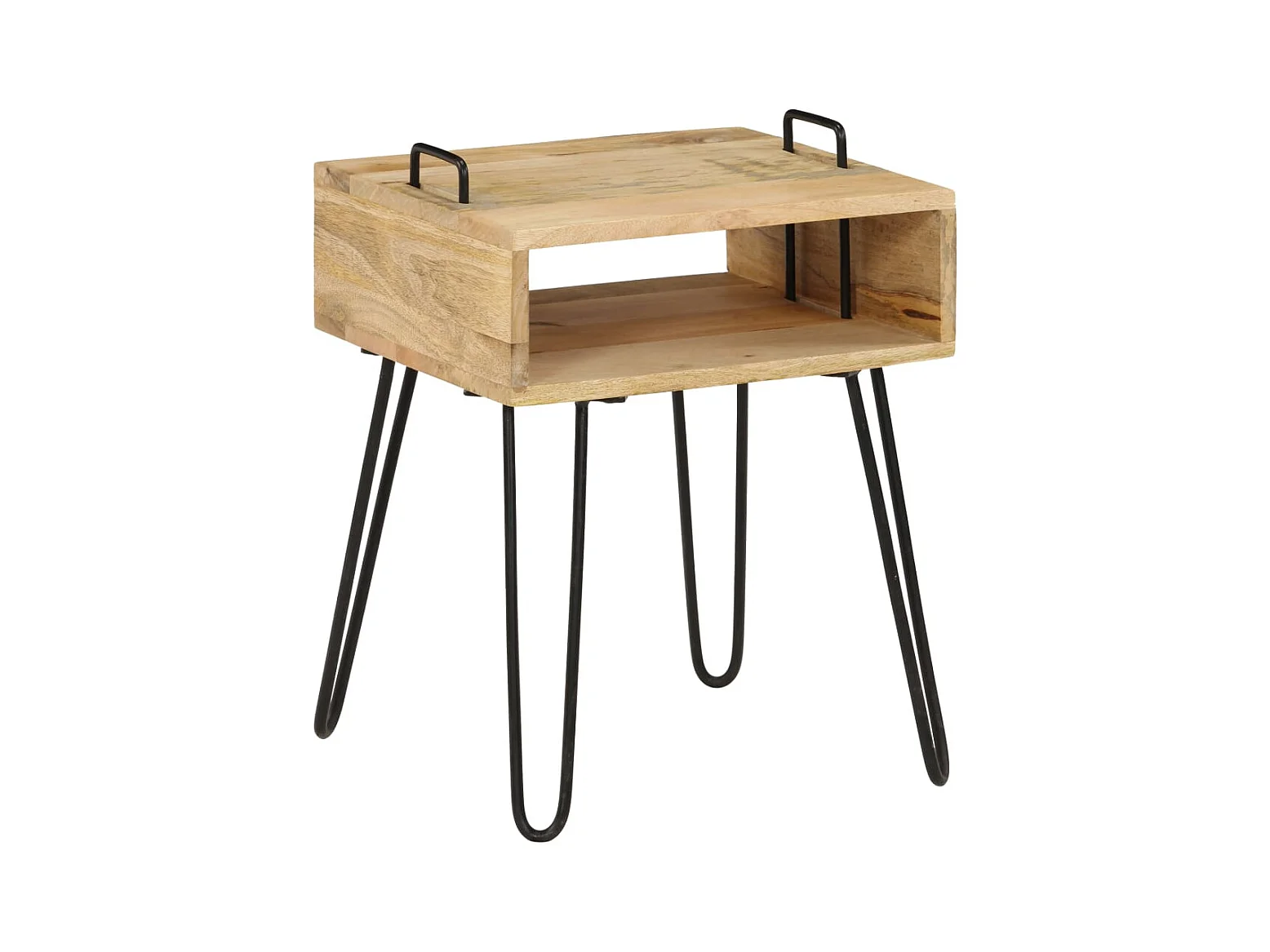 Table de chevet-Table d'appoint marron et noir bois de manguier solide