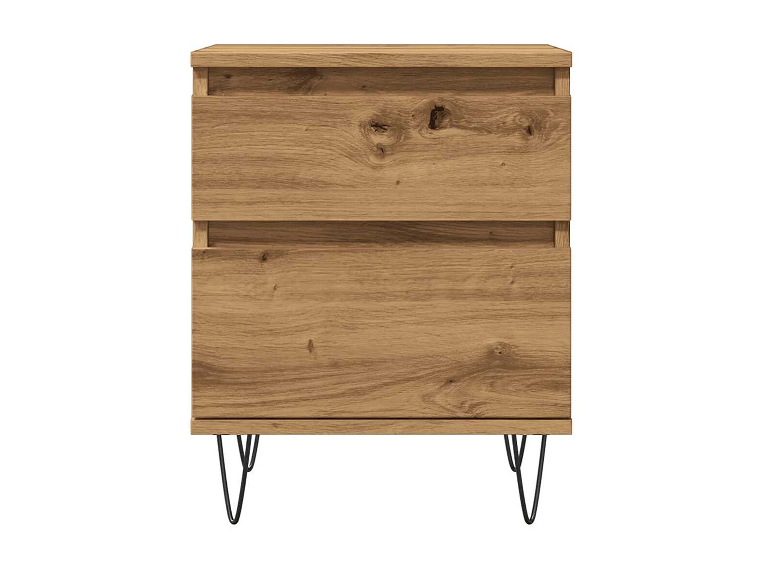 Table de chevet-Table d'appoint avec pieds en métal chêne artisanal 40x35x69 cm