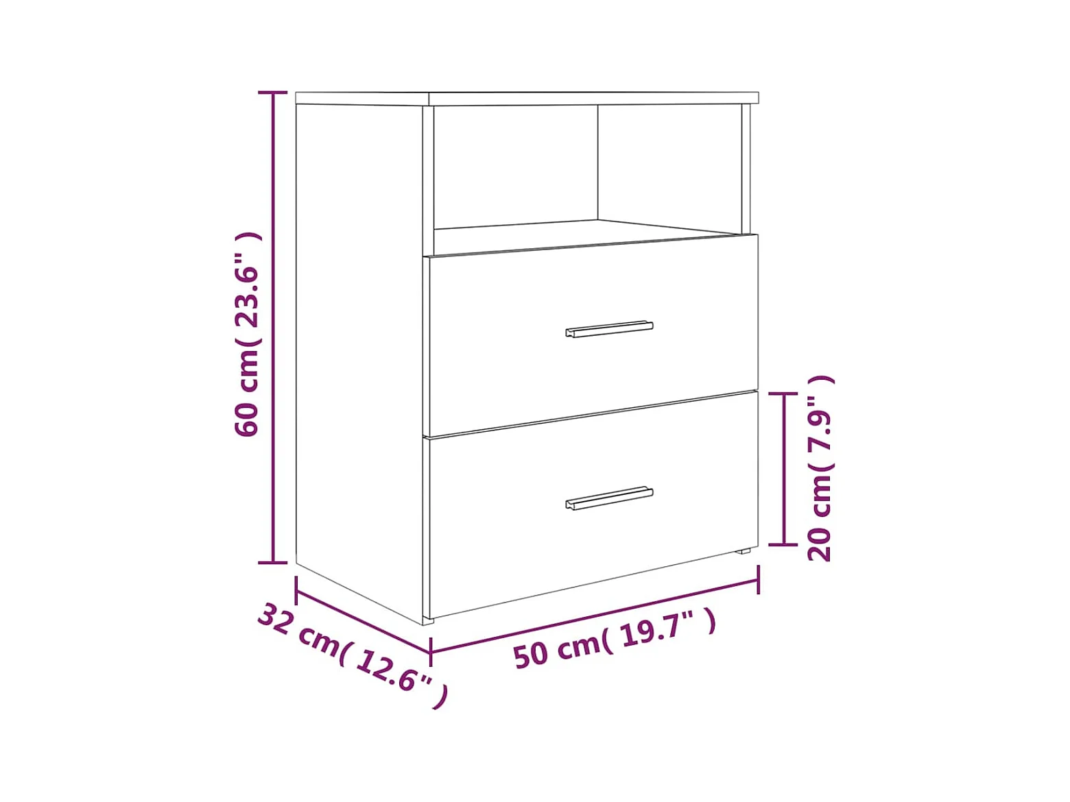 Table de chevet-Table d'appoint 50x33x60cm Bois d'acacia solide et d'ingénierie