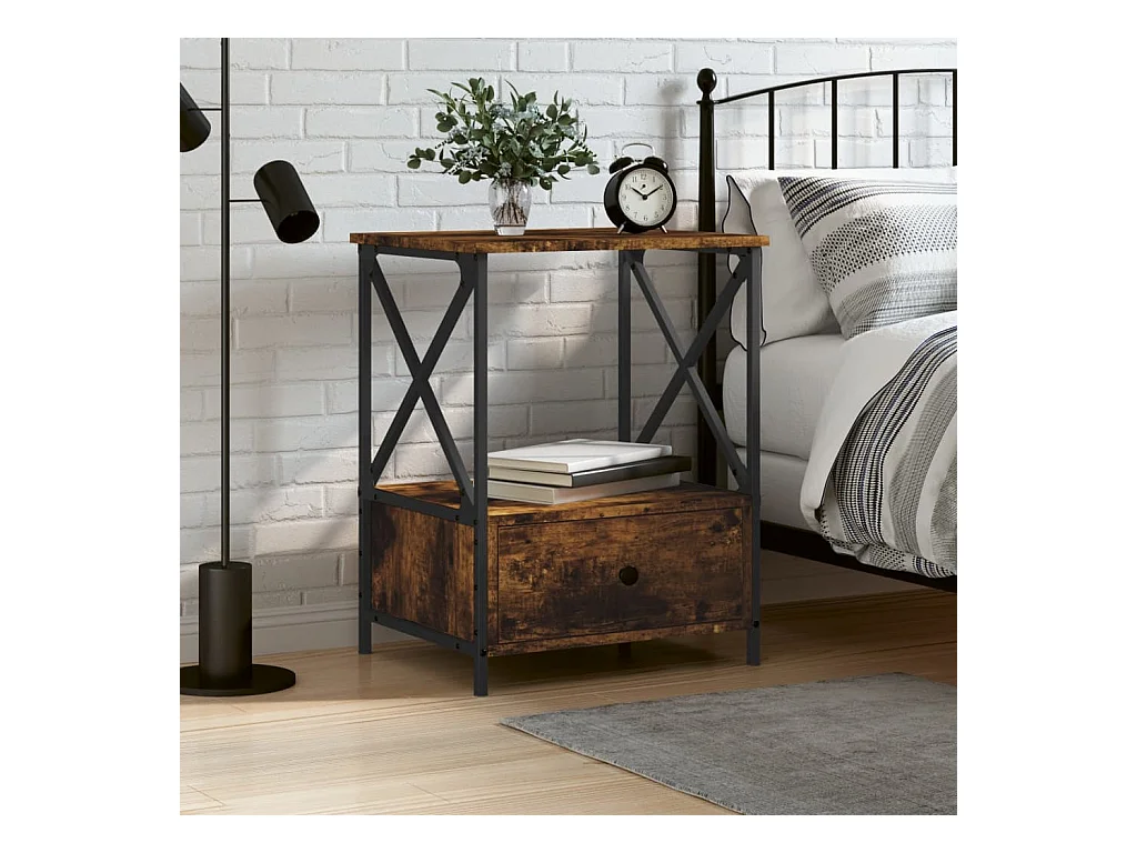 Table de chevet-Table d'appoint-Table de nuit Chêne fumé 50x36x60 cm Bois d'ingénierie