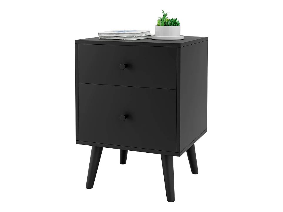 Table de Chevet, Table de Nuit à 2 Tiroirs en Bois d’Hévéa Massif de Style Moderne 45 x 39,5 x 62 CM, Noir