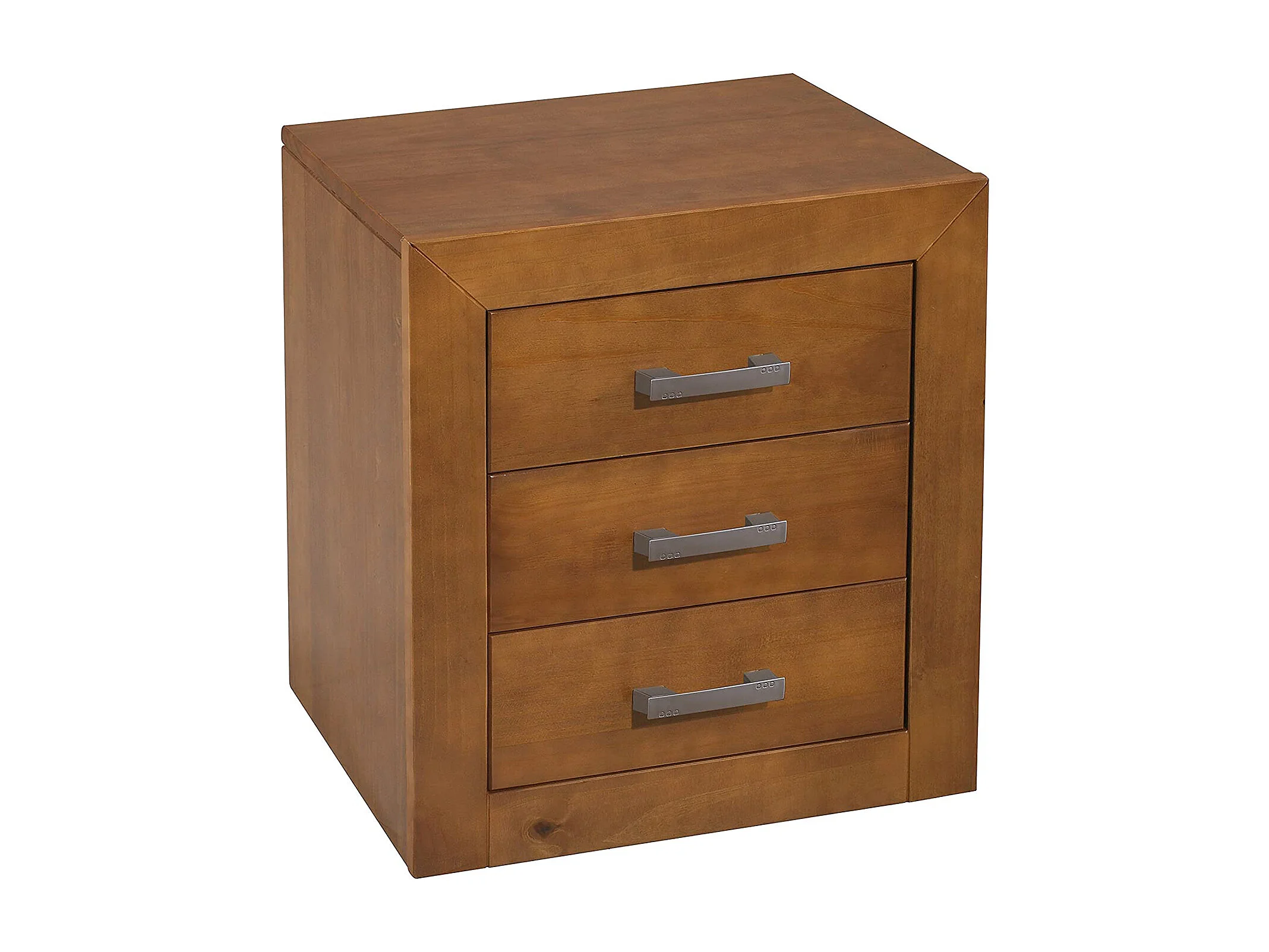Table de chevet / table de nuit à 3 tiroirs en pin massif coloris Cerisier - L. 50 x P. 35 x H. 55 cm
