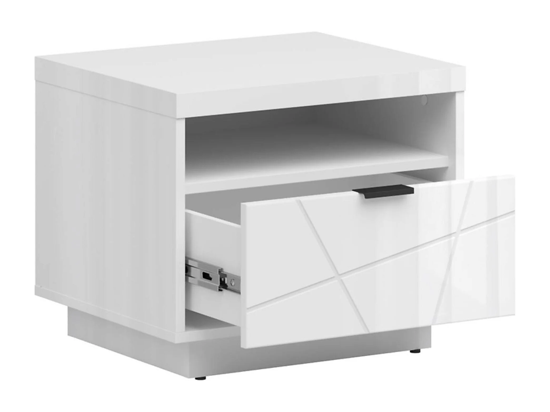 Table de chevet Table de nuit avec tiroir, coloris Blanc brillant/Blanc haute brillance - Longueur 50 x Profondeur 42,5 x Hauteur 42,5 cm
