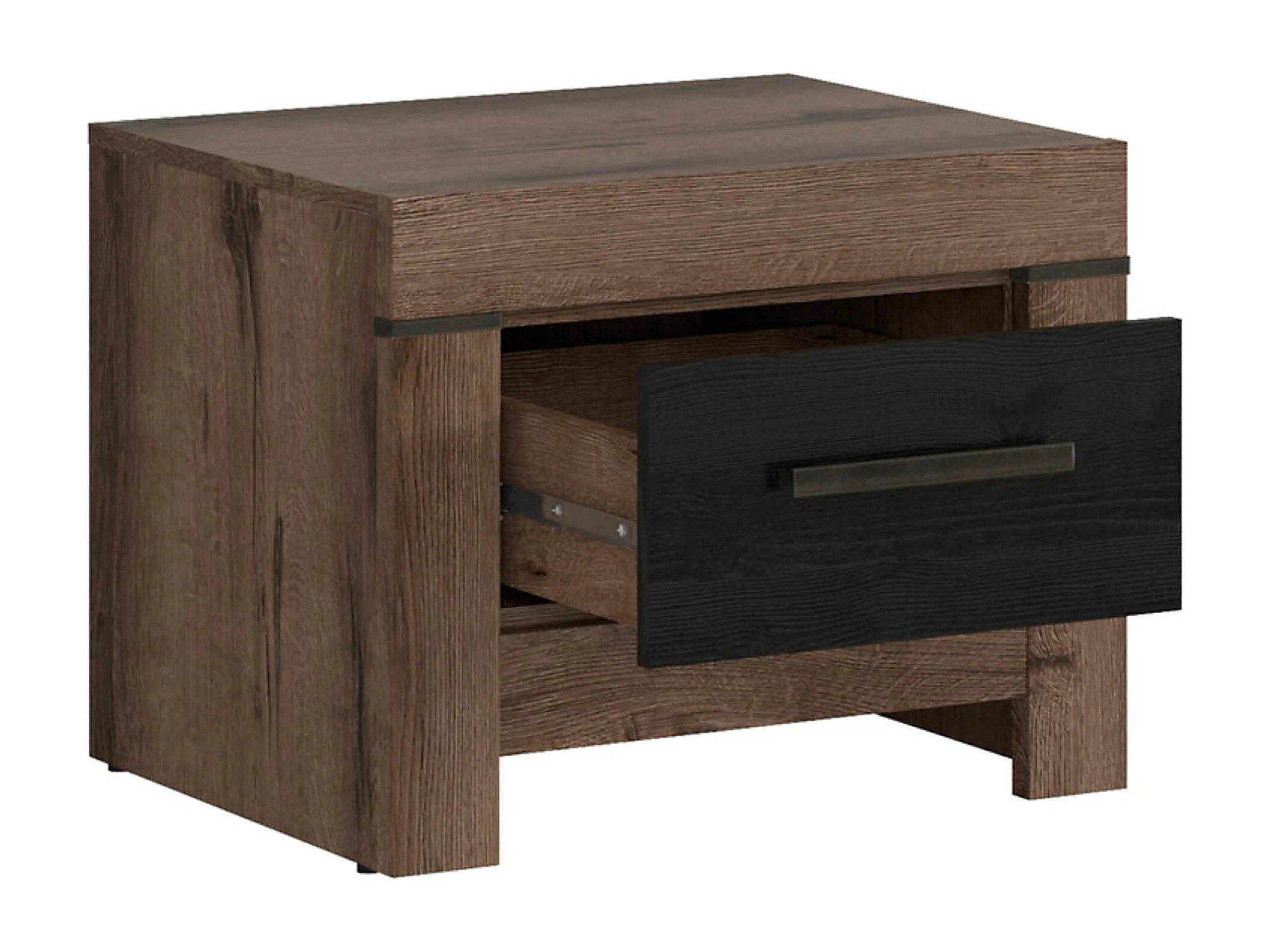 Table de chevet table de nuit avec tiroir coloris Chêne marron foncé/Chêne noir - Longueur 57 x Profondeur 45 x Hauteur 45 cm