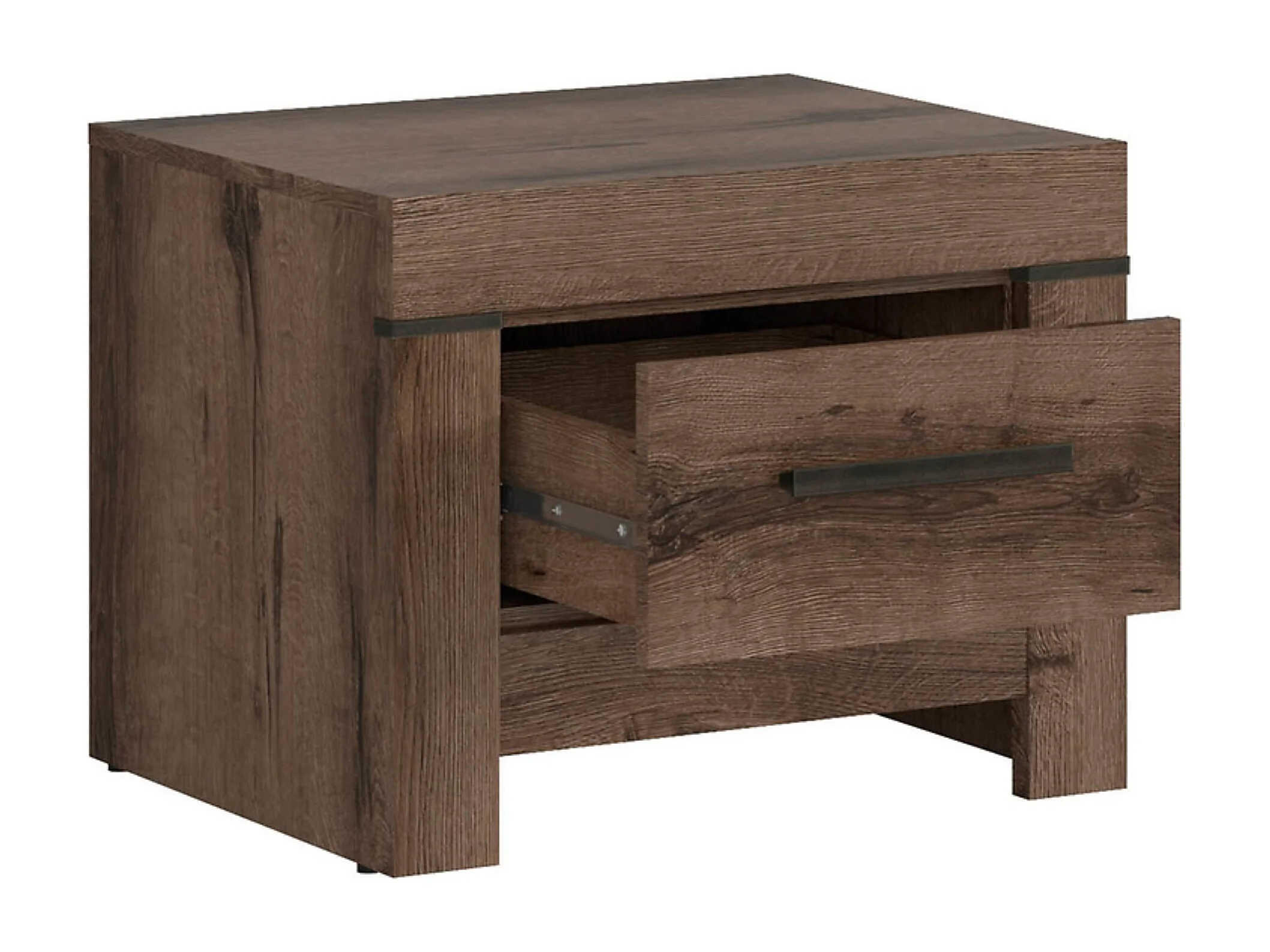 Table de chevet table de nuit avec tiroir coloris Chêne marron foncé/Chêne noir - Longueur 57 x Profondeur 45 x Hauteur 45 cm