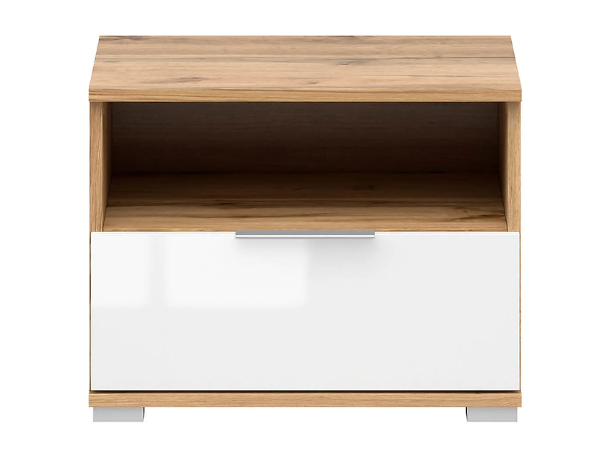 Table de chevet table de nuit avec tiroir coloris Chêne wotan/Blanc brillant - Longueur 50 x Profondeur 41 x Hauteur 38,5 cm