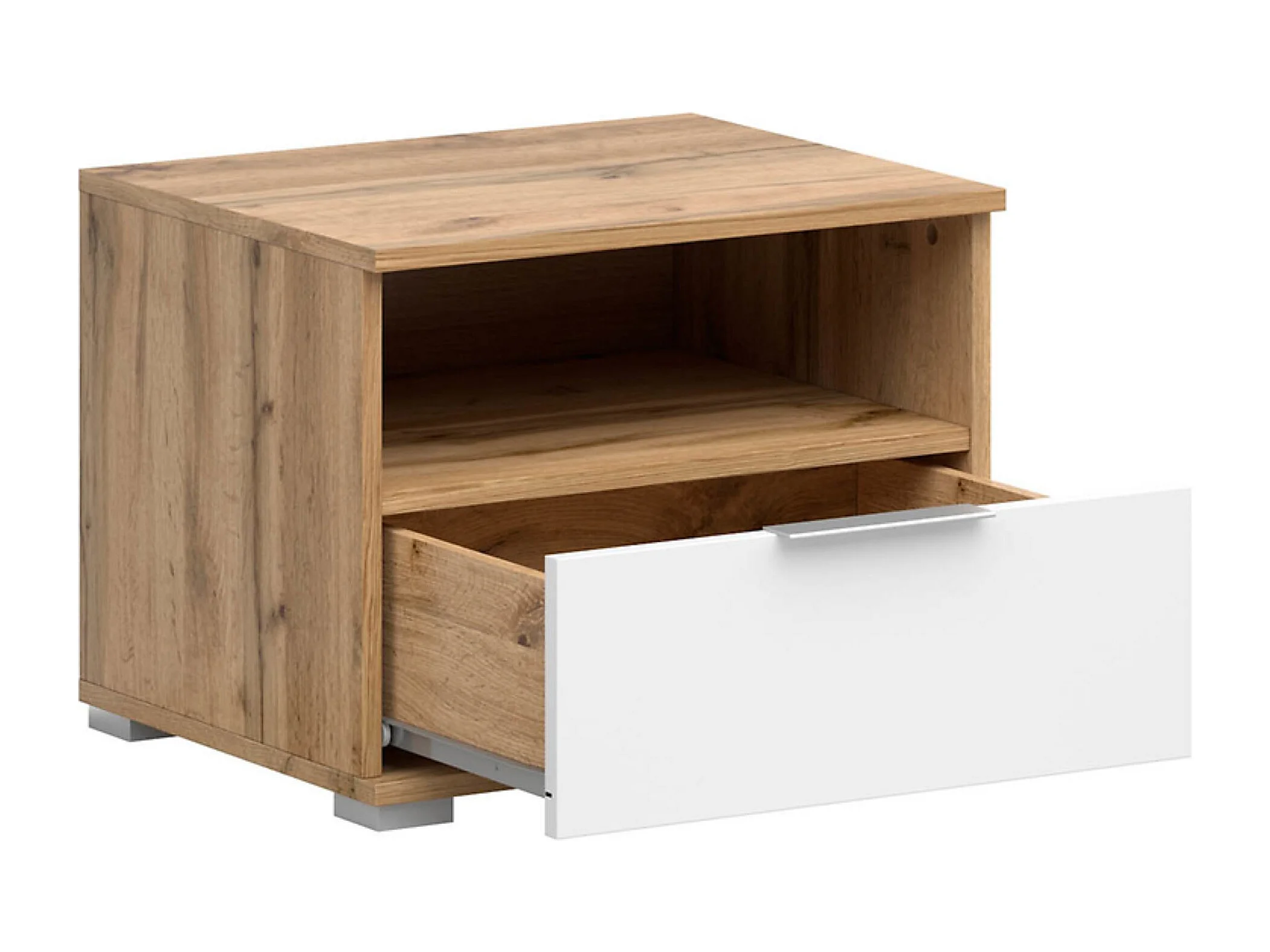 Table de chevet table de nuit avec tiroir, coloris Blanc/Chêne wotan - Longueur 54,5 x Profondeur 42 x Hauteur 50,5 cm